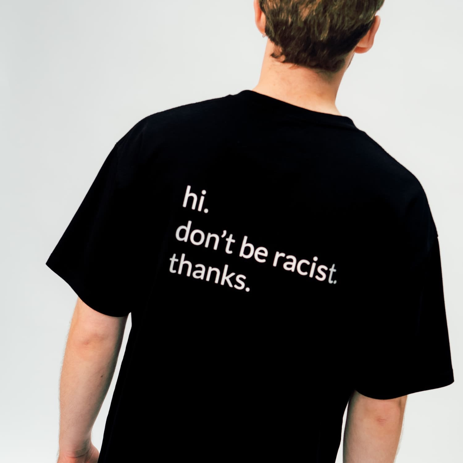 This T-shirt isn't a fashion gimmick, but a clear stance – against racism and for equal rights. The simple typography on the chest makes the difference: calm, honest, strong. Pair it casually with jeans or wear it deliberately under an open jacket – this shirt speaks for itself.