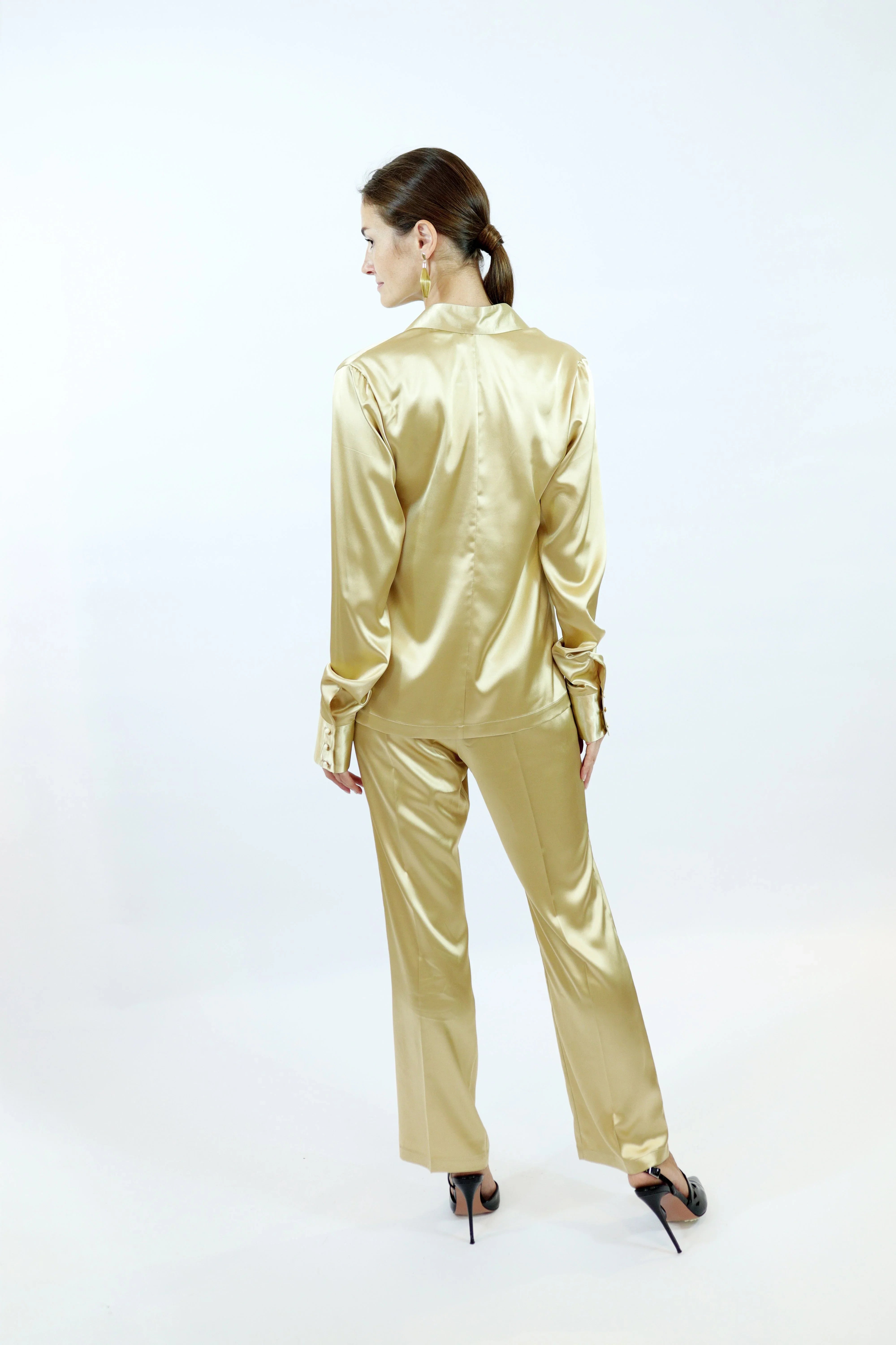 Made from 100% recycled polyester , the blouse is not only stylish but also a conscious choice for the environment . The material is durable, easy to care for, and comfortable to wear.