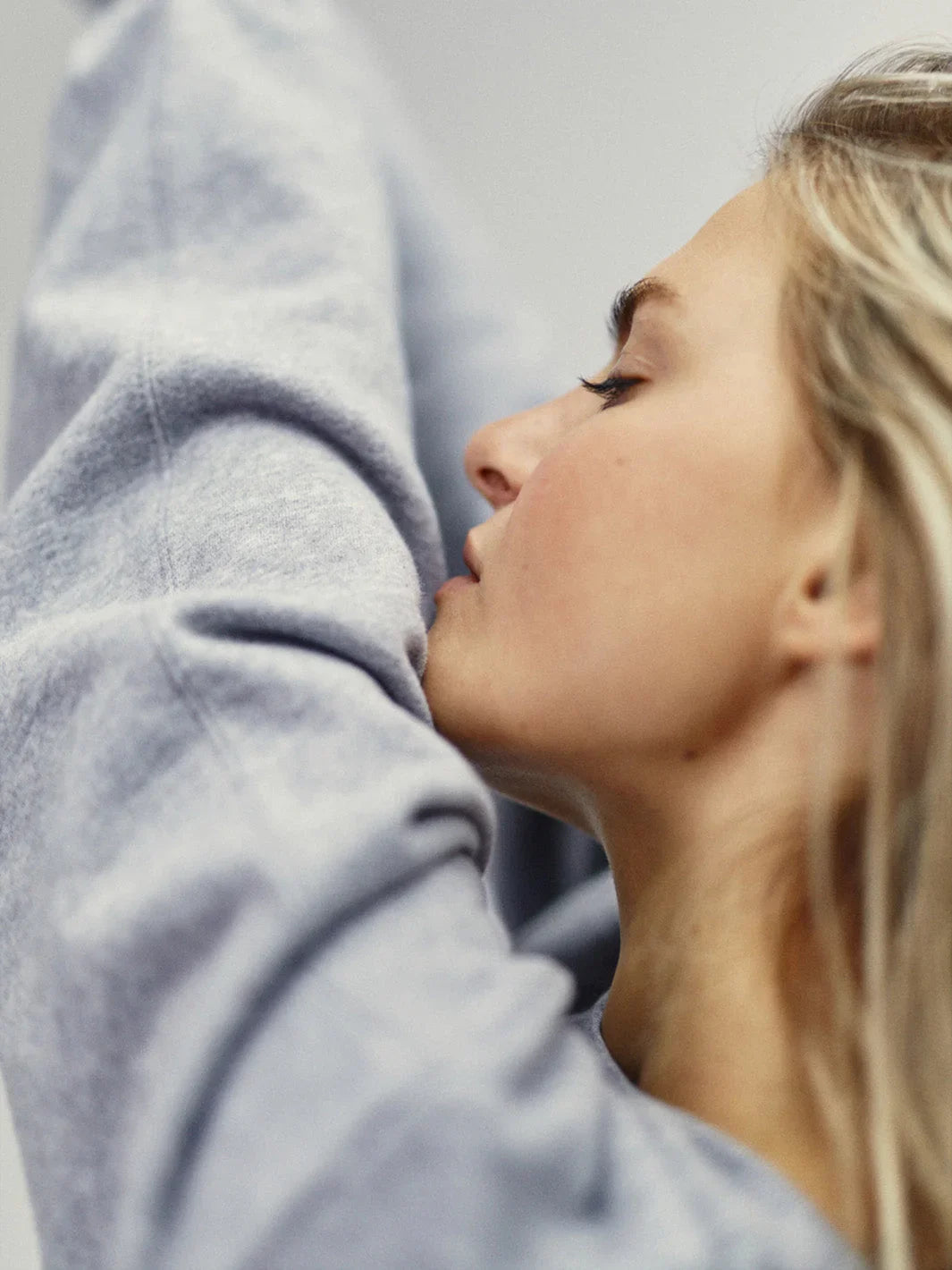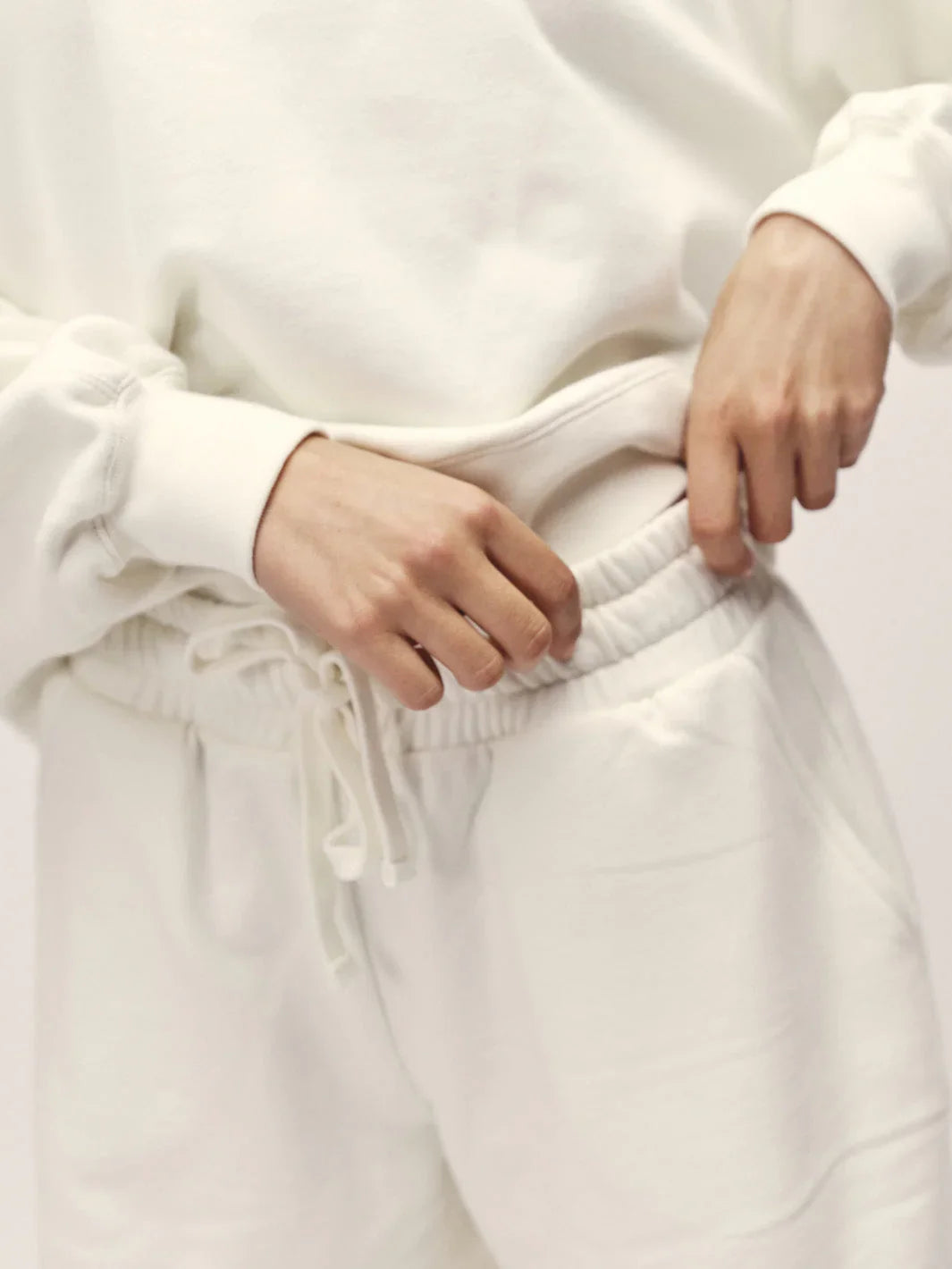 This organic cotton round-neck sweatshirt combines modern comfort with sustainable responsibility. With its dropped shoulders , striking decorative seam on the sleeve , and slightly cropped cut, it's a stylish statement piece—perfect for pairing with sweatpants, high-waisted denim, or feminine skirts.