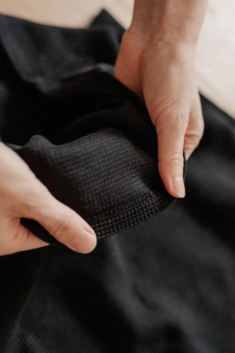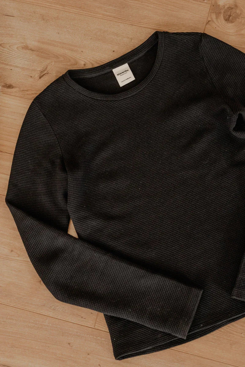Fairly manufactured from GOTS-certified organic cotton – the EMILY round neck long sleeve in black offers year-round comfort, sustainable quality and timeless design.