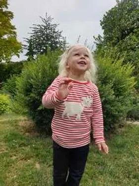 This red and white striped long-sleeved shirt made of organic cotton with a cute goat appliqué is the perfect garment for little animal lovers. Crafted from high-quality fine rib cotton , it offers optimal comfort and a cheerful design.