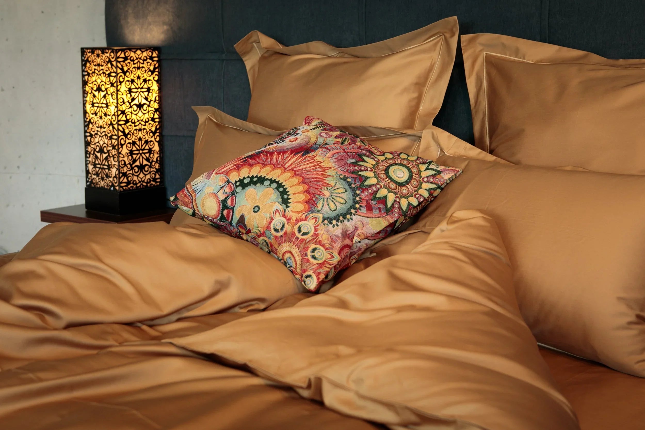 Experience the luxurious feel of high-quality Swiss satin with our Uni Cinnamon bed linen set. Crafted from 100% mercerized Mako cotton, it offers an elegant sheen and unparalleled comfort. The main keyword for this exquisite bed linen is "bed linen set."