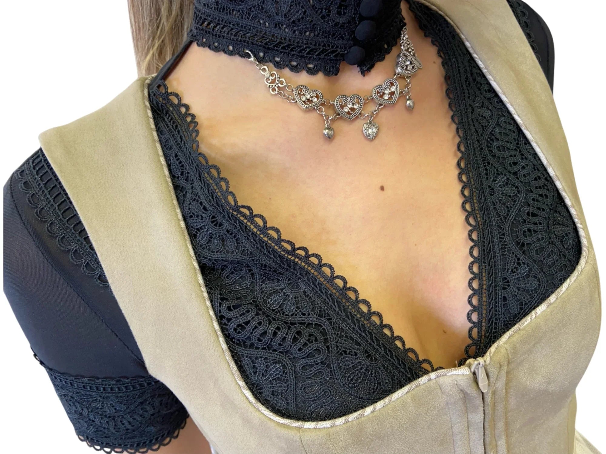 "Herzerl" bodice chain – double-row with rhinestones and heart pendants | 14.5 cm