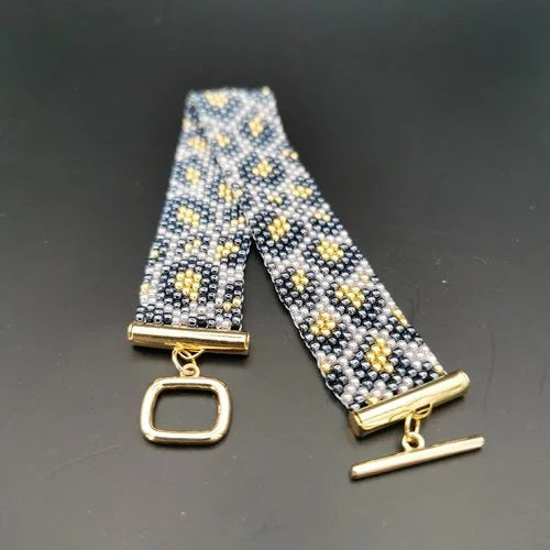 Hand-sewn with patience using the peyote technique , 2 mm small Japanese glass beads create a noble, wild look that is both powerful and stylish.