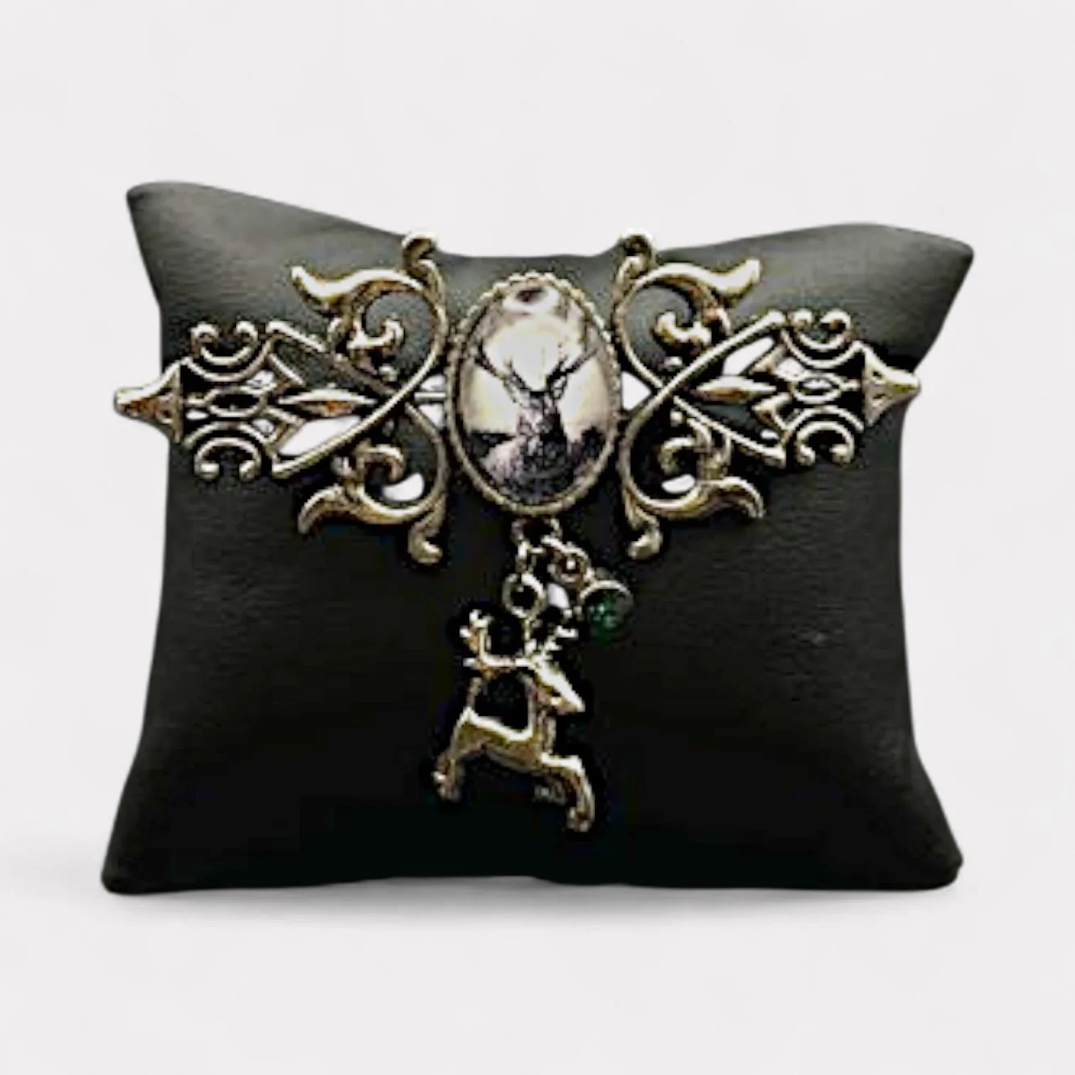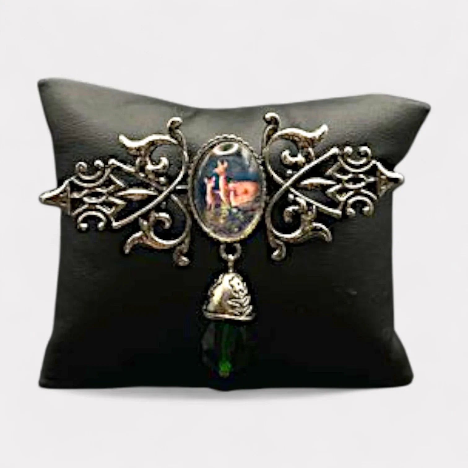 Traditional brooch “Deer II” – With picture cabochon & lovely pendants