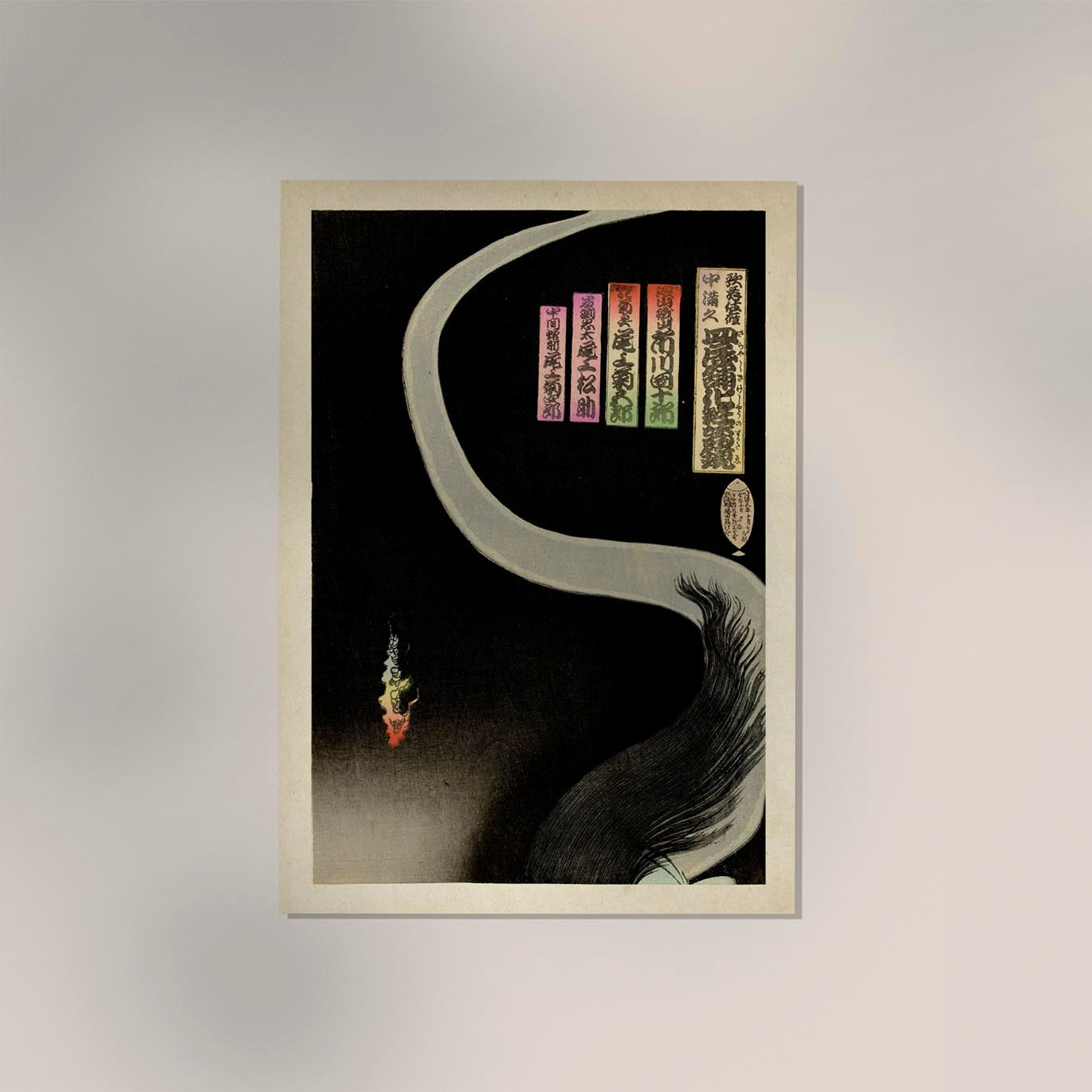 Das Samurai Aoyama and the Okiku Ghost Fine Art Print zeigt ein ikonisches Motiv des japanischen Künstlers Kunichika. Es verbindet traditionelle Ukiyo-e-Kunst mit dramatischer Symbolik – ein Werk, das Geschichte und Mythos auf eindrucksvolle Weise vereint.
