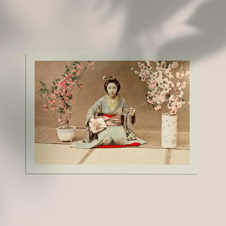 Geisha Playing Samisen by Ogawa Kazumasa – Historische Japan-Fotografie | Fine Art Print | Canvas