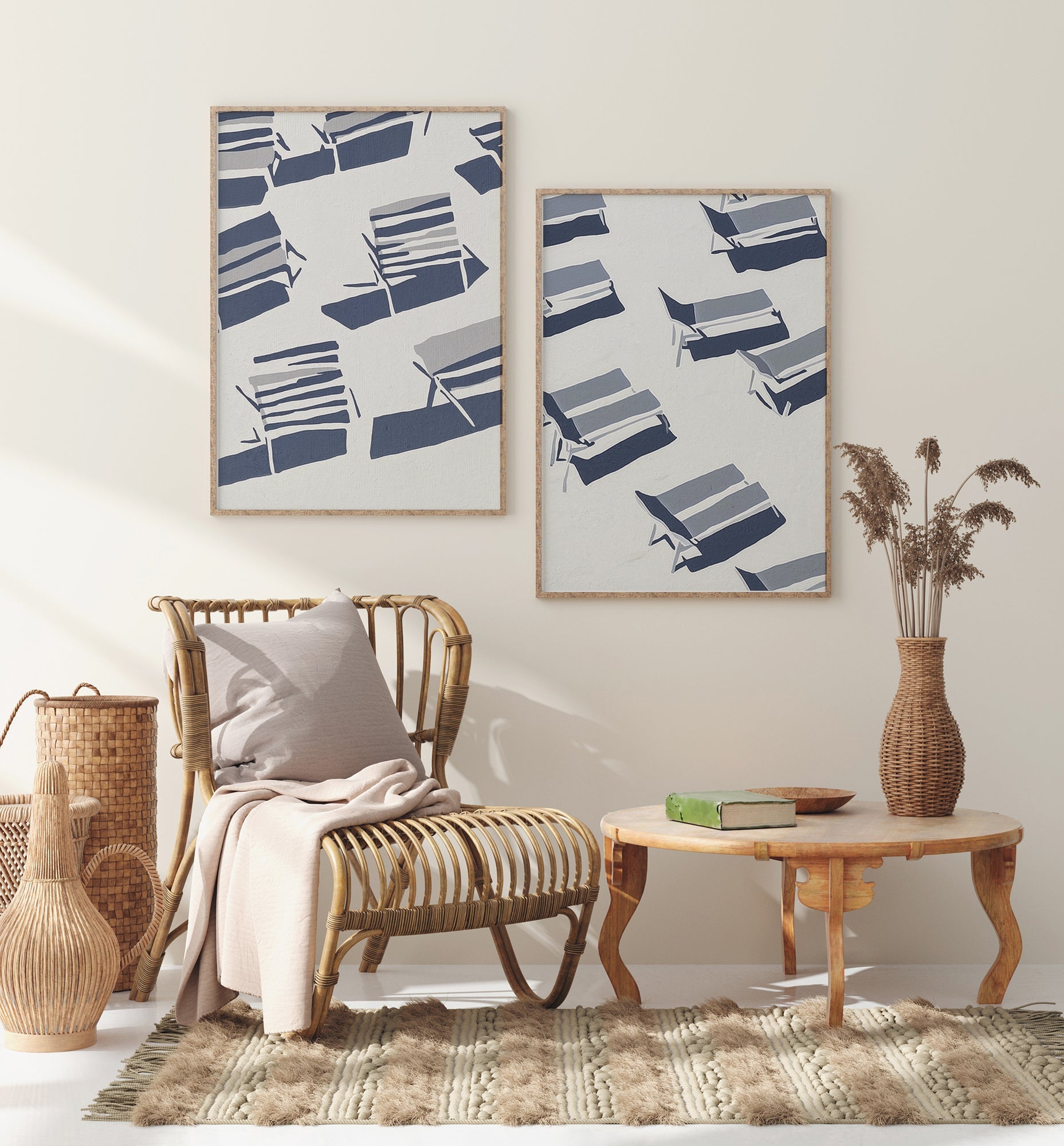 Beach Chairs and the Shadows – Set of 2 Prints | Fine Art Paper | Canvas | UV‑archivfest