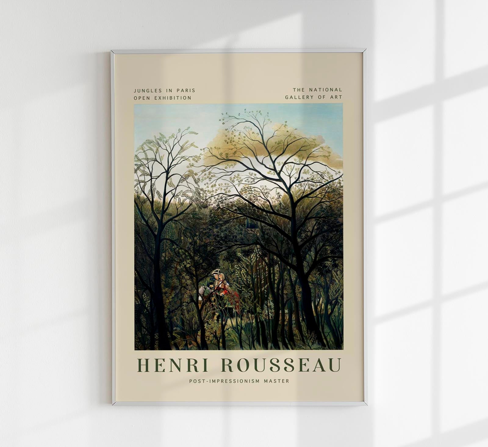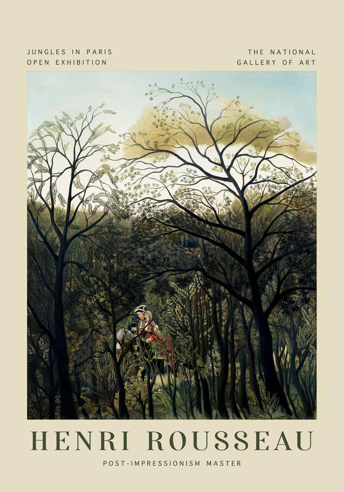 Das Rendez-vous Rousseau Exhibition Poster bringt die träumerische Welt Henri Rousseaus an deine Wand – exotisch, geheimnisvoll und voller symbolischer Kraft. Ein Kunstwerk, das Natur und Fantasie in harmonischer Balance zeigt.
