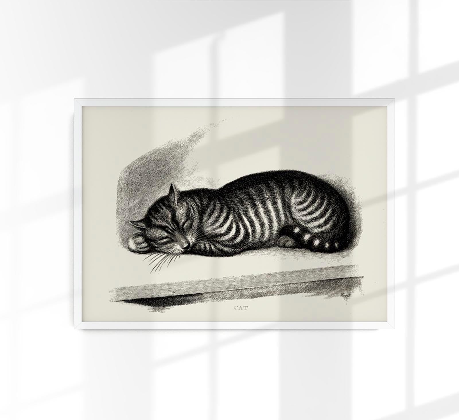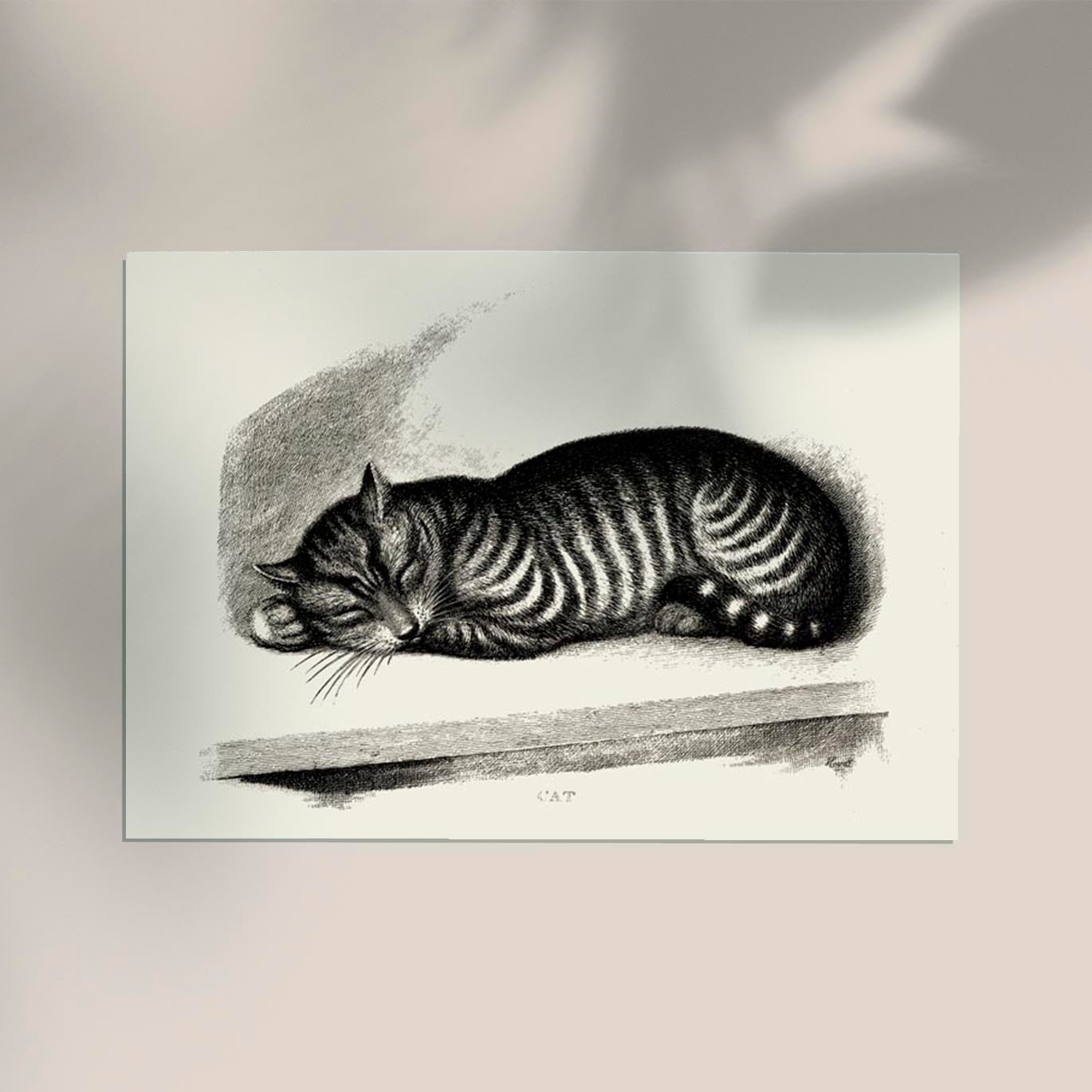 Antique Sleeping Cat Poster – Vintage Illustration | Fine Art Print | Cozy Mood