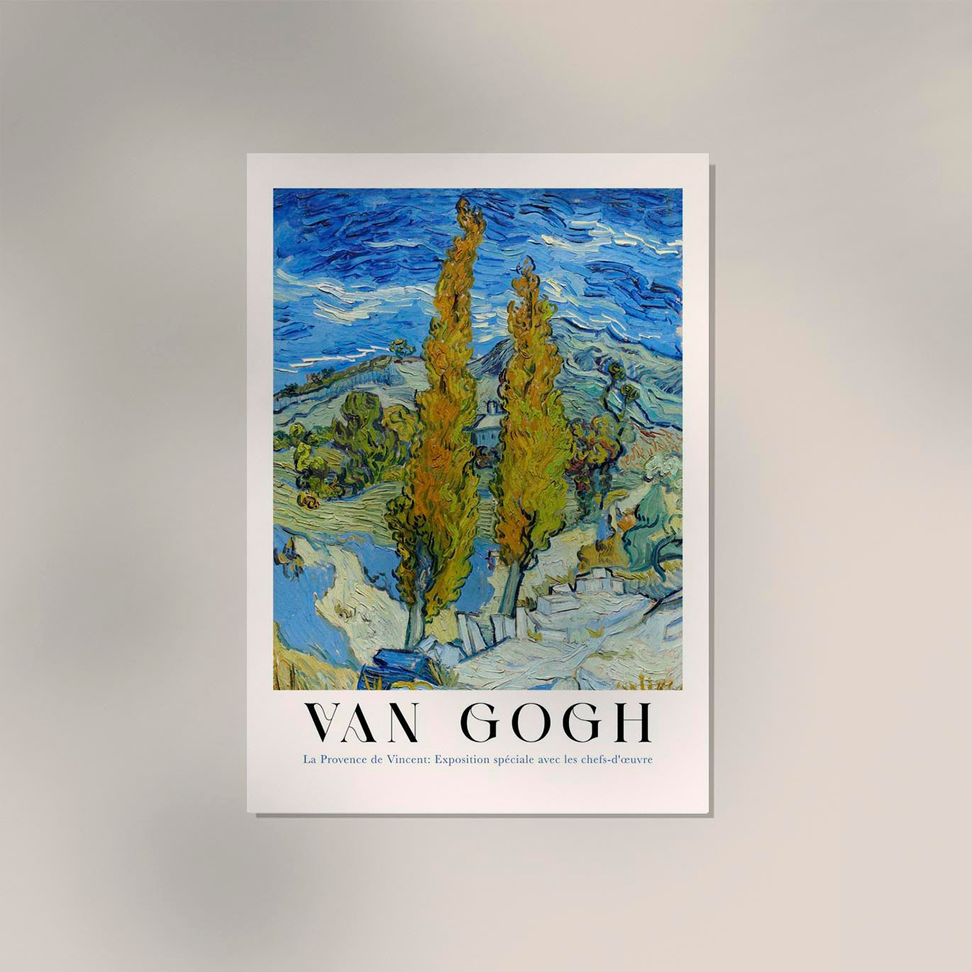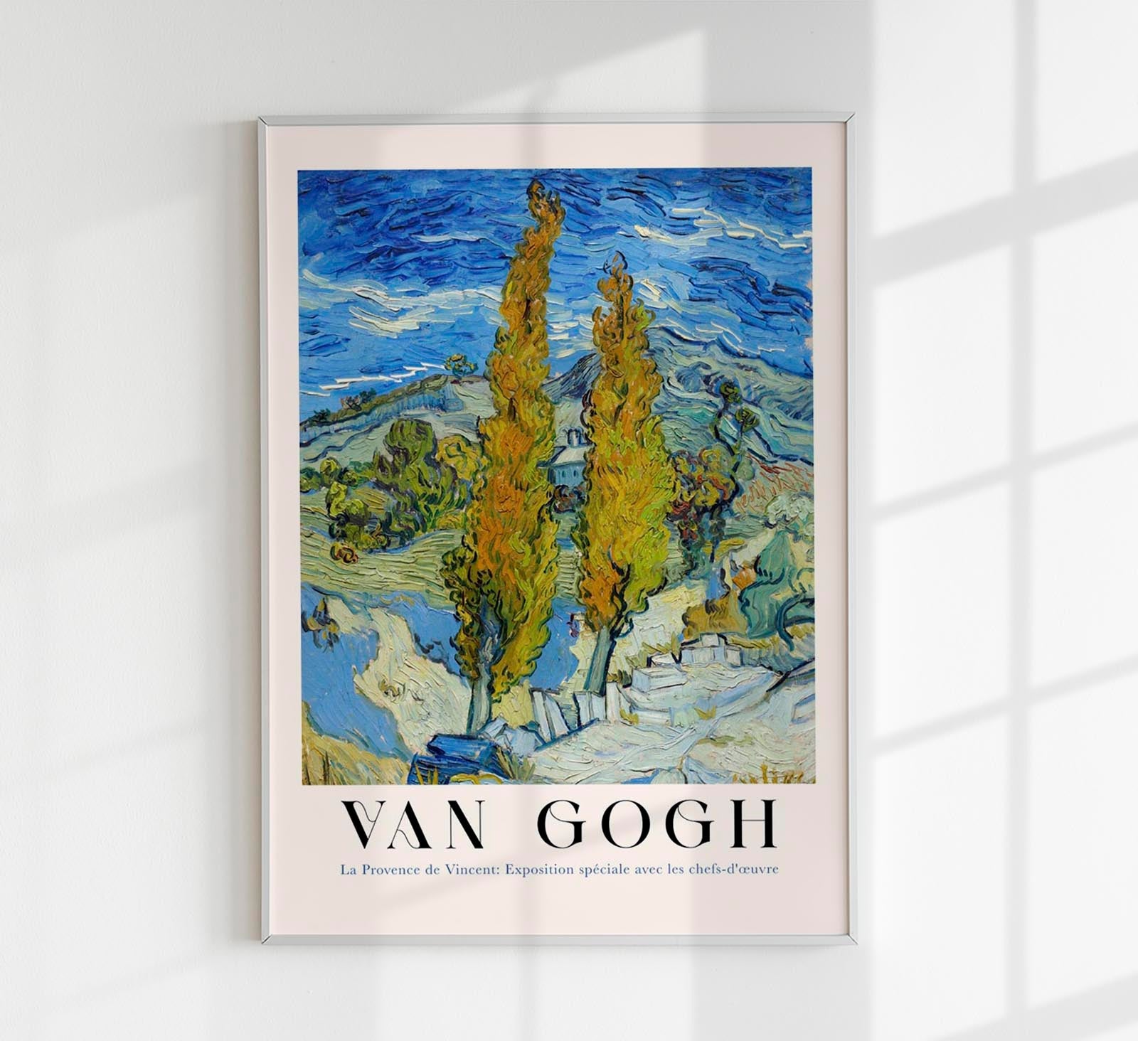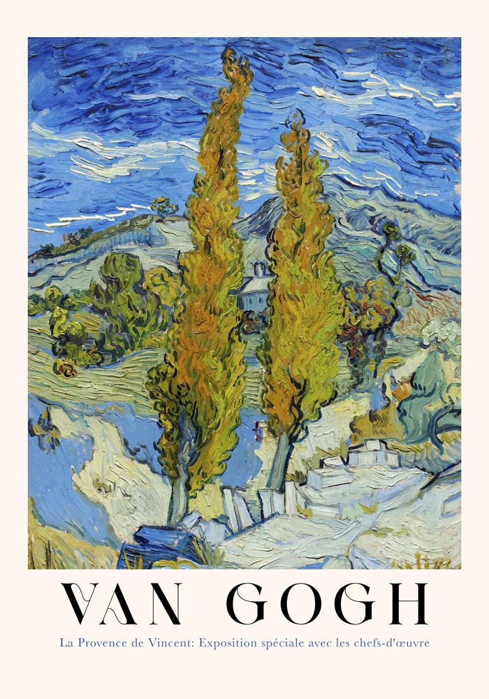 Das The Poplars at Saint-Rémy Exhibition Art Poster by Van Gogh fängt die vibrierende Energie und emotionale Tiefe des Originals ein – ein Meisterwerk der Naturdarstellung voller Bewegung und Licht.
