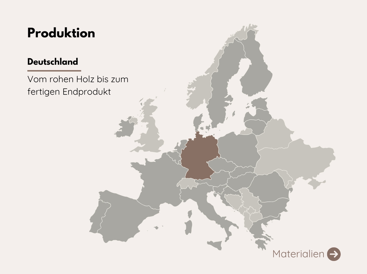 The products are all made of sustainable solid wood, making them high-quality and durable. The wood used comes from local German forests.