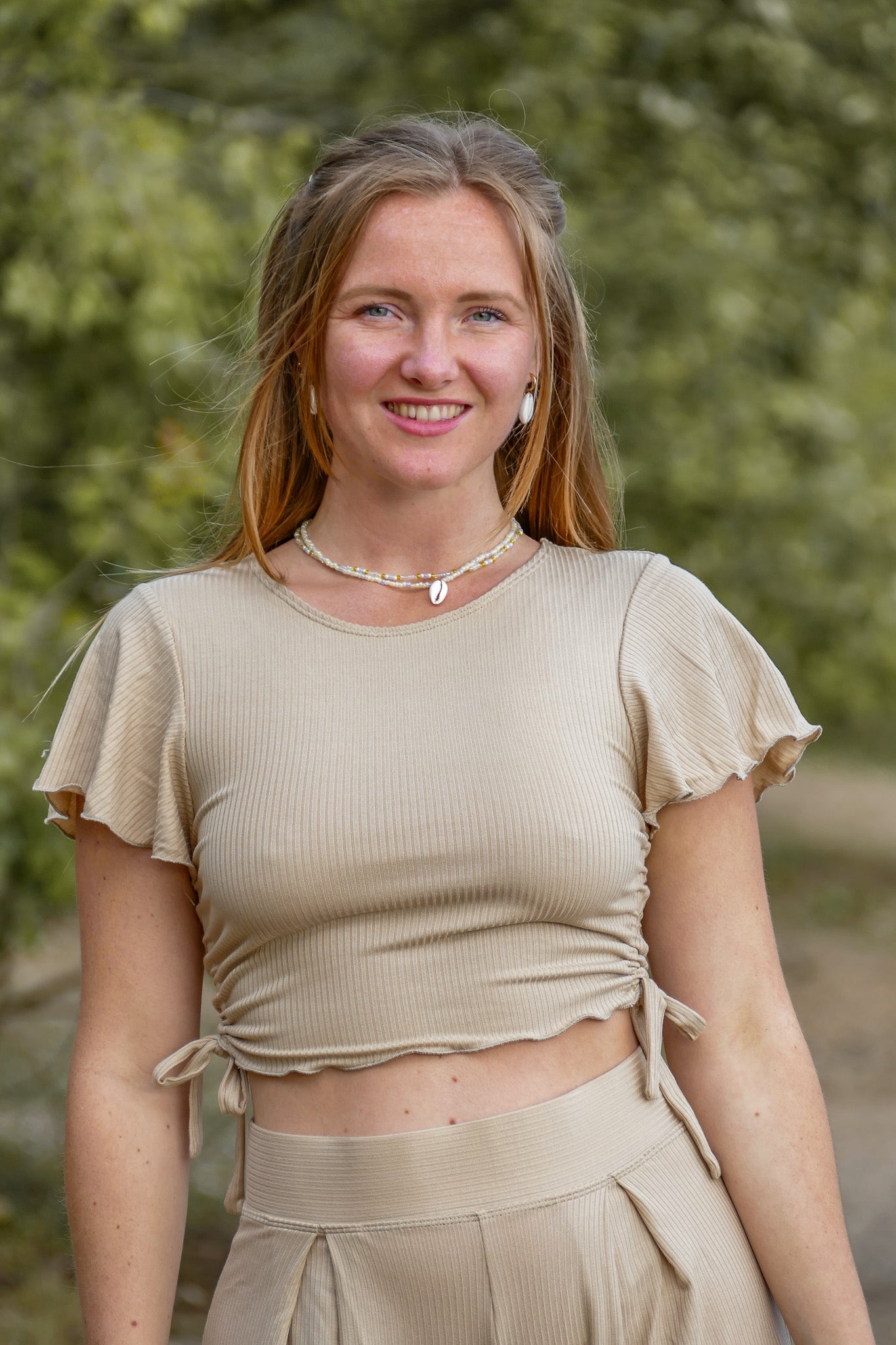 Farrah Crop T-Shirt – Warm Sand | Mit Rüschen | Weich & Nachhaltig