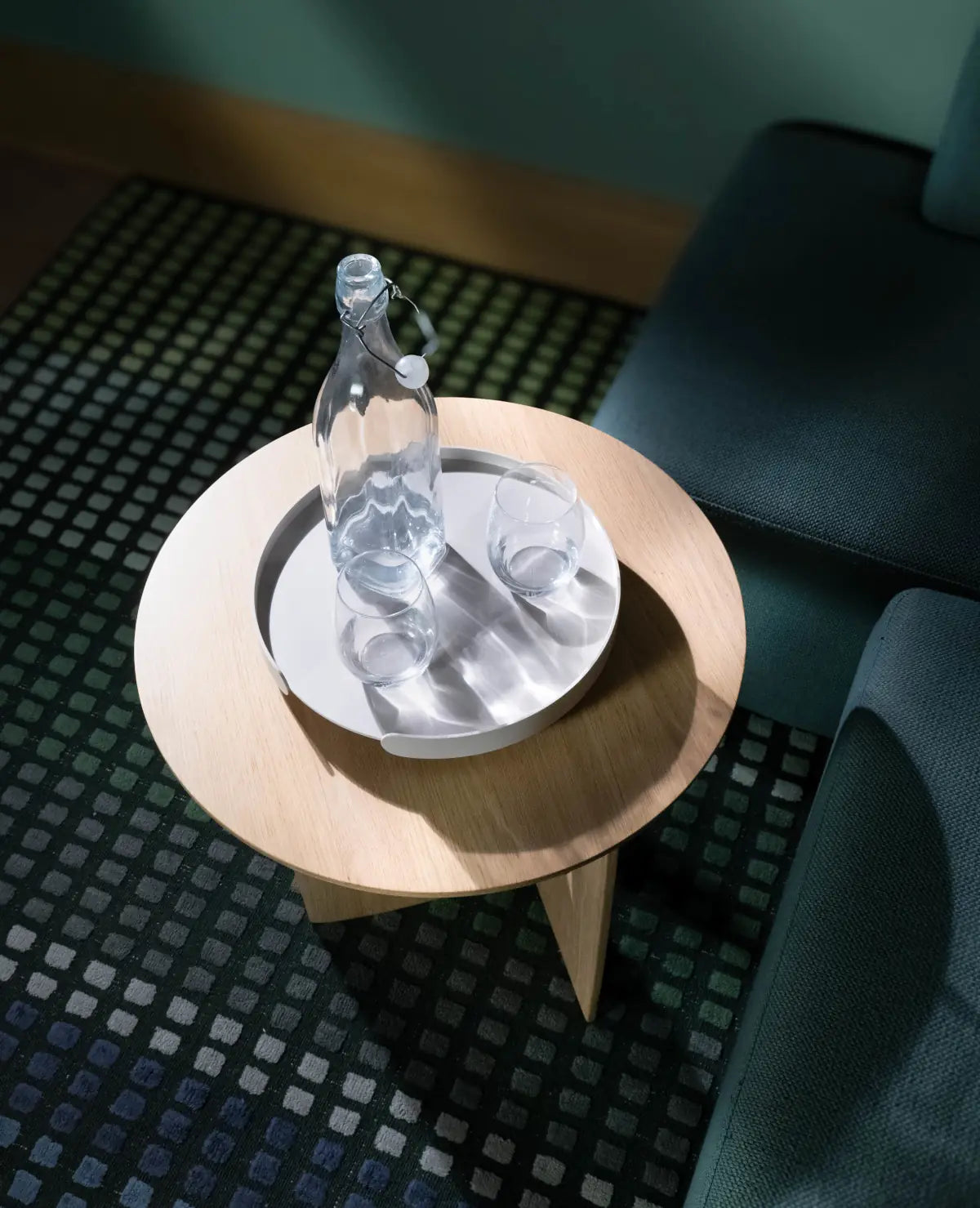 Mit seinem kompakten Durchmesser von 30 cm und der charakteristischen, umlaufenden Reling bringt MILO Design und Funktion in perfekte Balance. Ob als stilvolle Servierhilfe für Kaffeespezialitäten, als organisatorisches Element für Schmuck und Accessoires oder als dekorative Basis auf dem Esstisch – MILO besticht durch seine klare, runde Formsprache und seine enorme Vielseitigkeit.