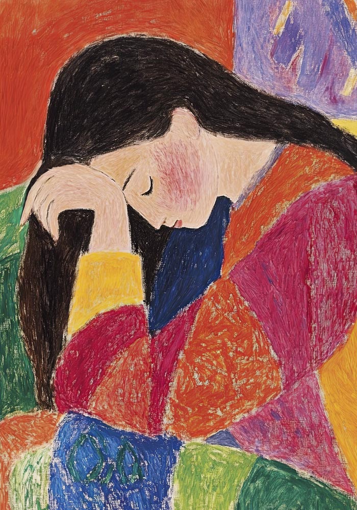 Das Colorful Girl – Art Print setzt auf leuchtende, harmonisch abgestimmte Farben und klare, grafische Akzente – ein modernes Porträt mit starker Präsenz und warmer Ausstrahlung.