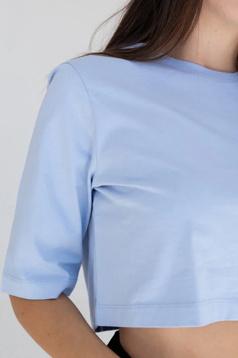 Fresh & stylish – the ELISA crop top made from organic cotton in light blue