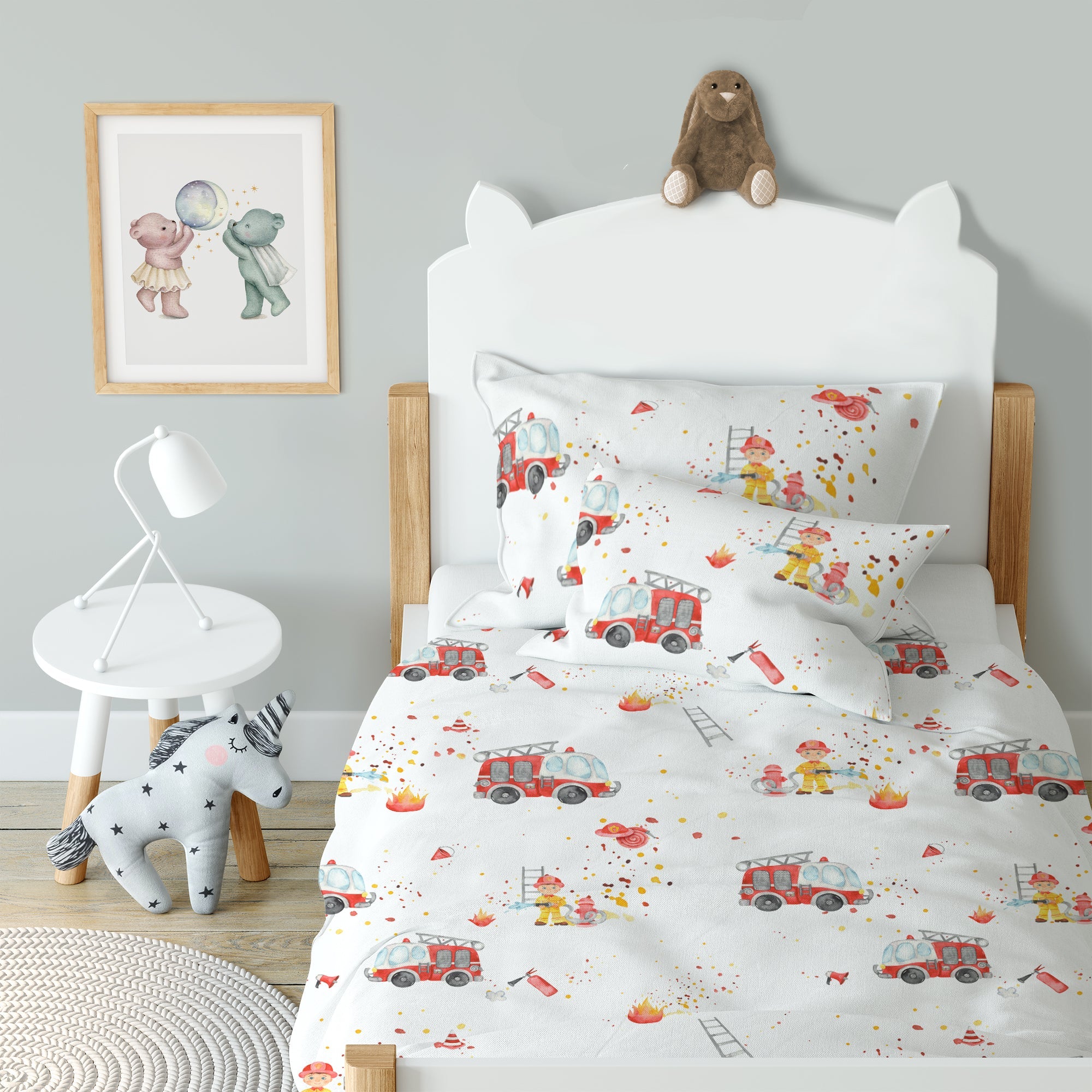 Leslis "Feuerwehr" Kinderbettwäsche – Musselin/Satin | OEKO‑TEX 100 | Kleine Helden