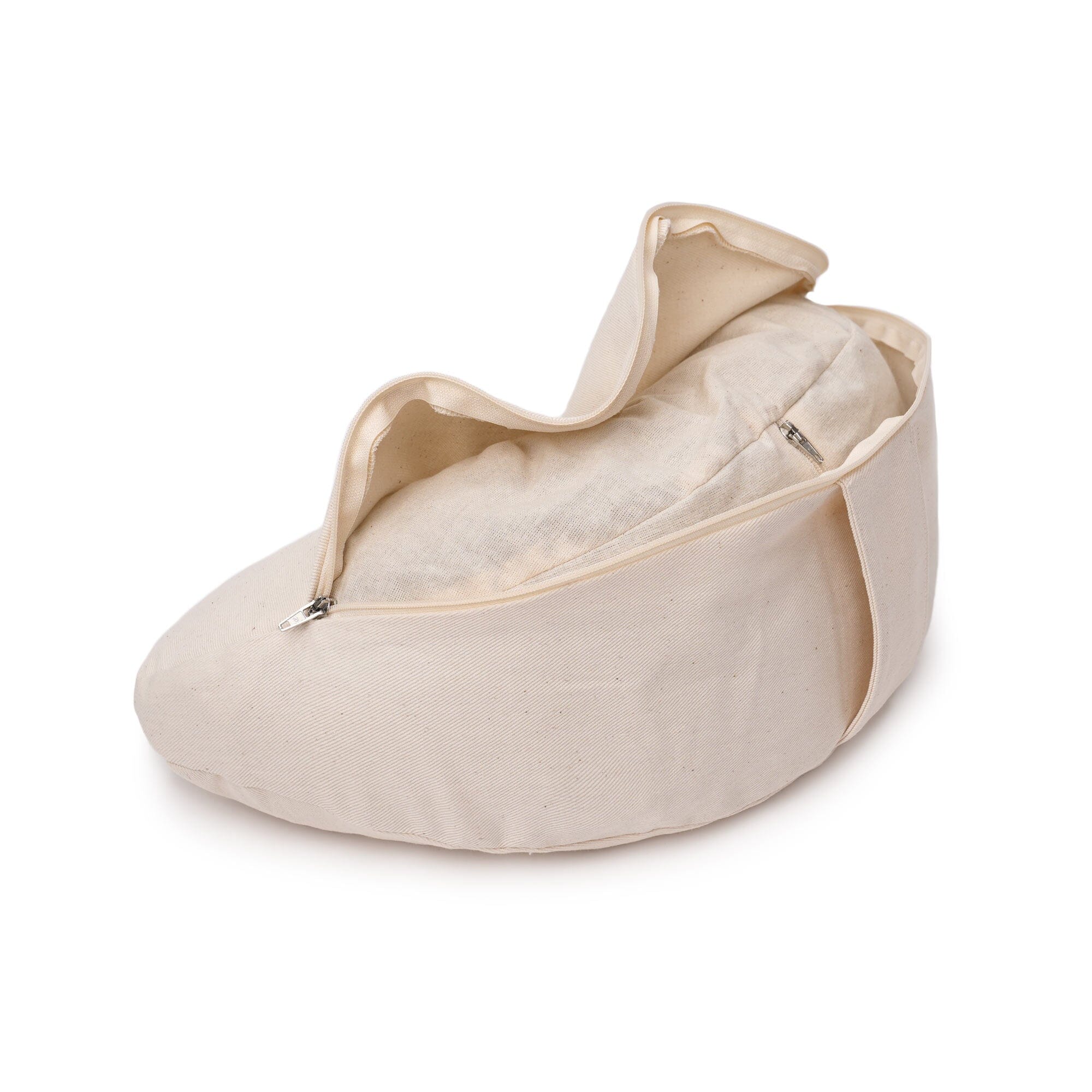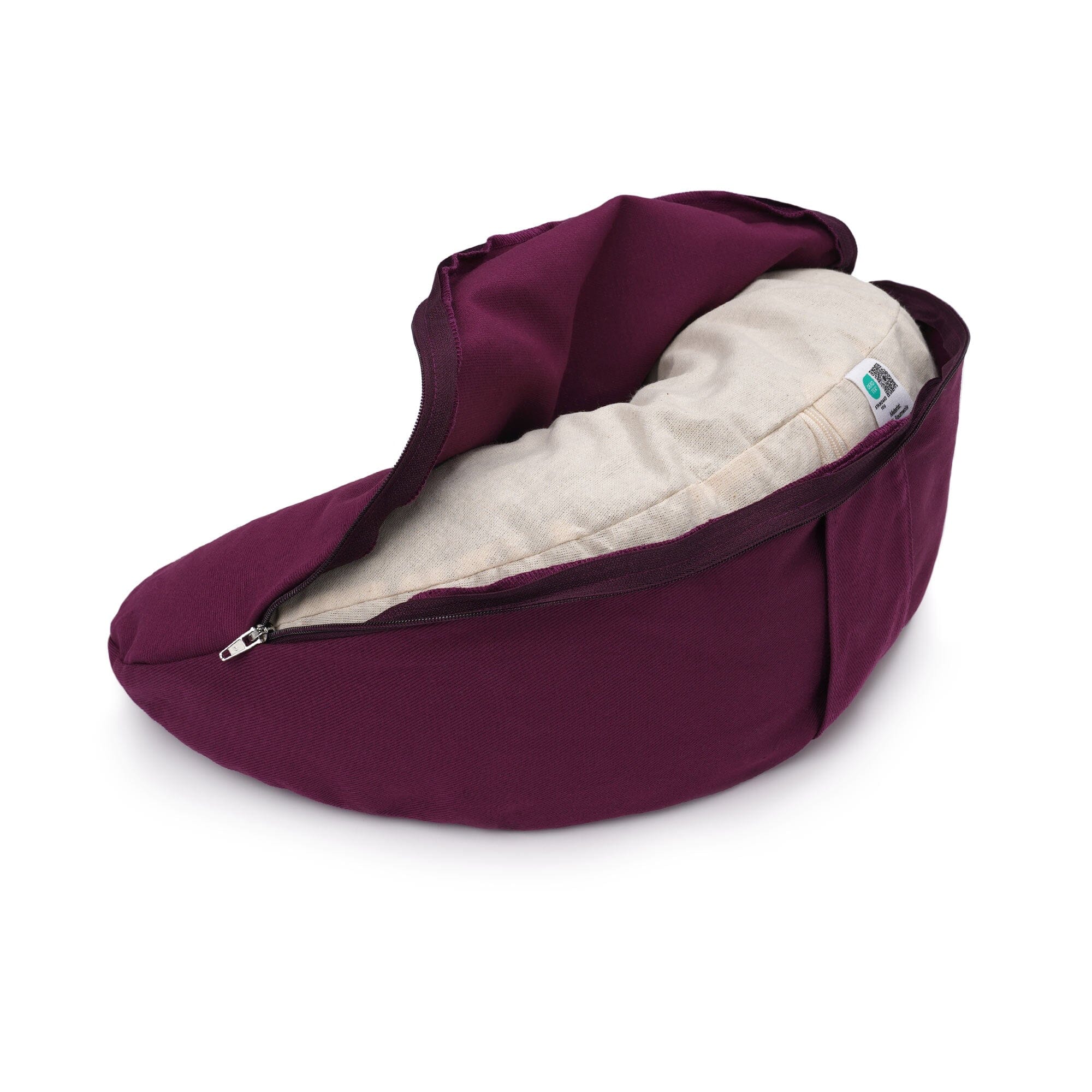 Die Kombination aus reiner Baumwolle im Bezug und formstabilen Buchweizenschalen im Inlett ermöglicht natürliche Atmungsaktivität und dauerhafte Formstabilität. Das Gewebe fühlt sich fest und angenehm an – auch bei längeren Sitzmeditationen.