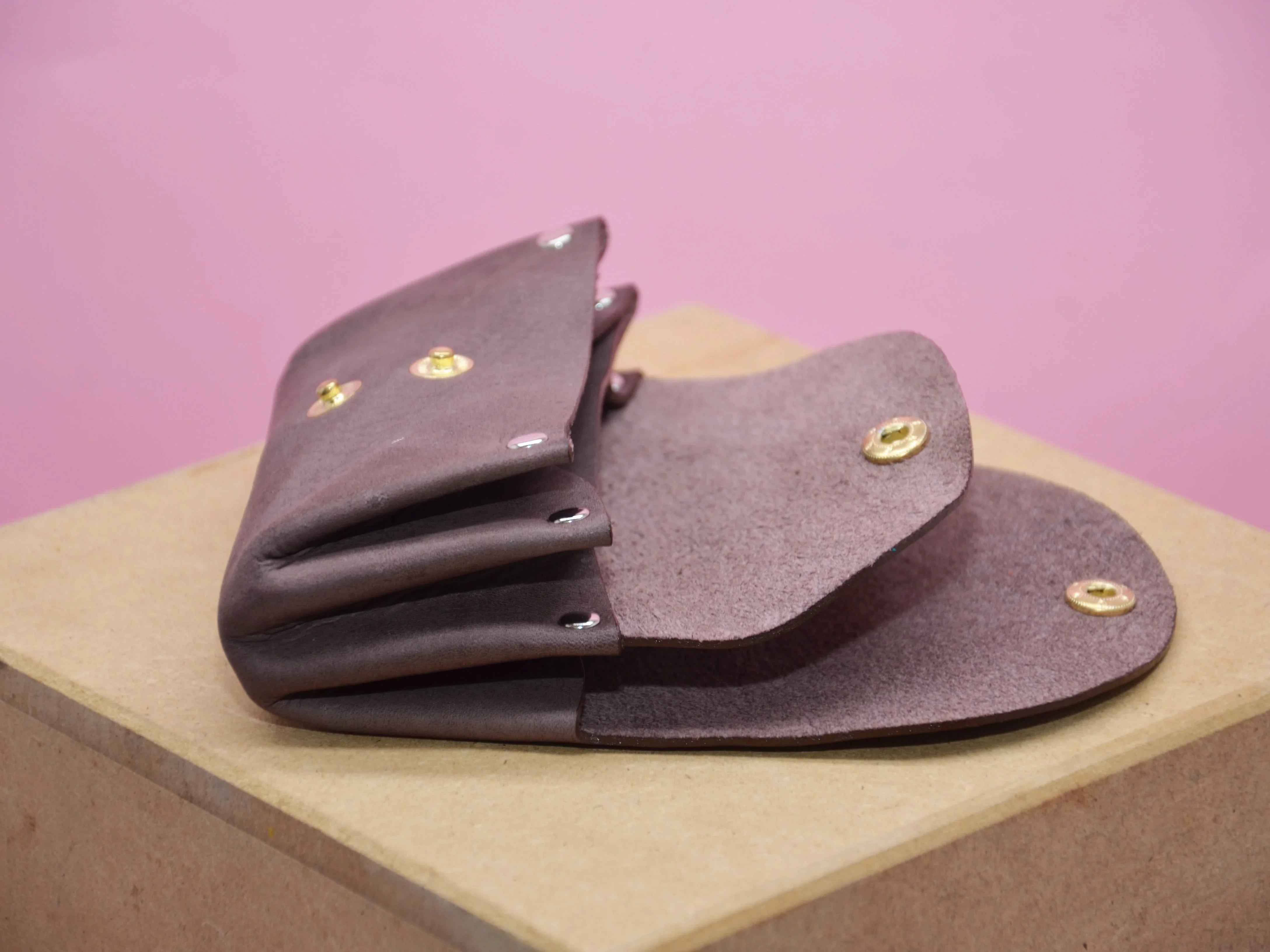 Mit drei großzügigen Fächern für Karten, Münzen und Belege sowie einem sicheren Druckknopfverschluss bietet die Geldbörse praktischen Komfort bei kompakter Form. Das Innenmaterial besteht aus samtigem Velourleder, ganz ohne Innenfutter, für ein authentisches Ledergefühl.