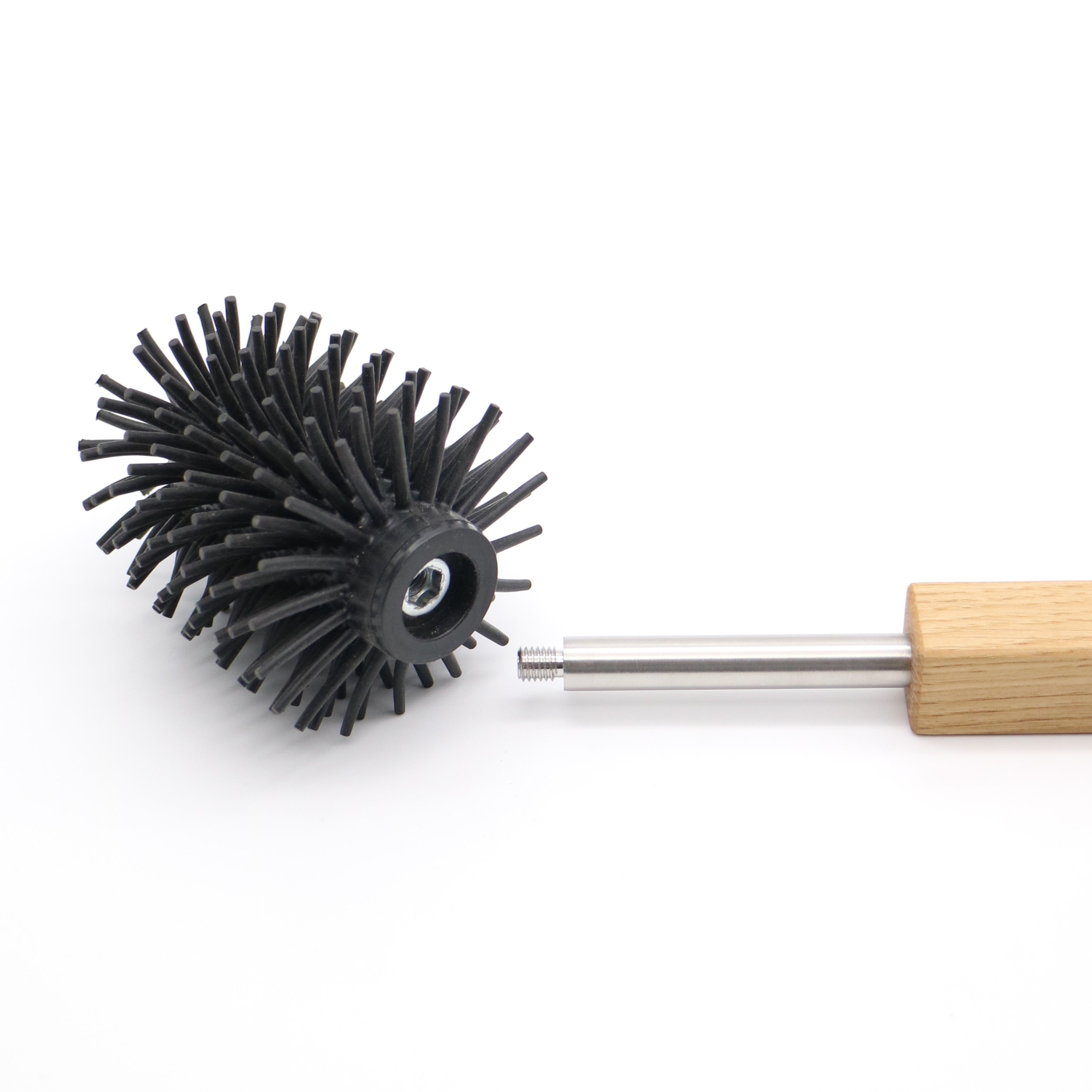This toilet brush set is made of natural oak wood, which we oil. This makes it a real eye-catcher in your bathroom. The toilet brush consists of a silicone brush with a replaceable head. It fits neatly into a closed toilet brush holder. A removable ceramic container inside protects the wooden brush set from dirt and moisture, making it easy to maintain cleanliness and hygiene.