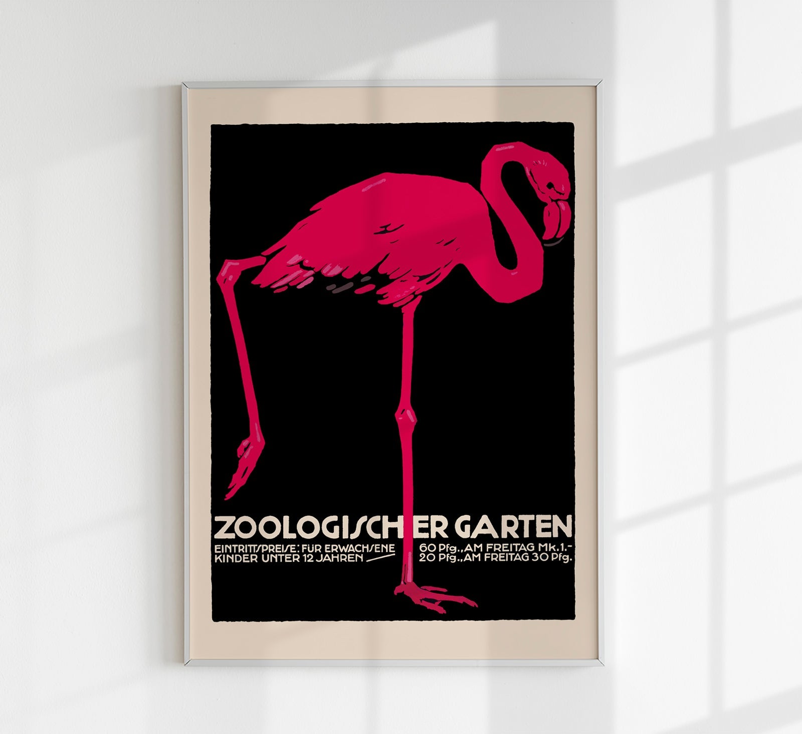 The Zoologischer Garten Flamingo Poster is a stylish vintage-style art print that combines the beauty of historic zoo posters with modern print quality. Made to order in our Berlin studio – with high-quality materials and meticulous attention to detail.