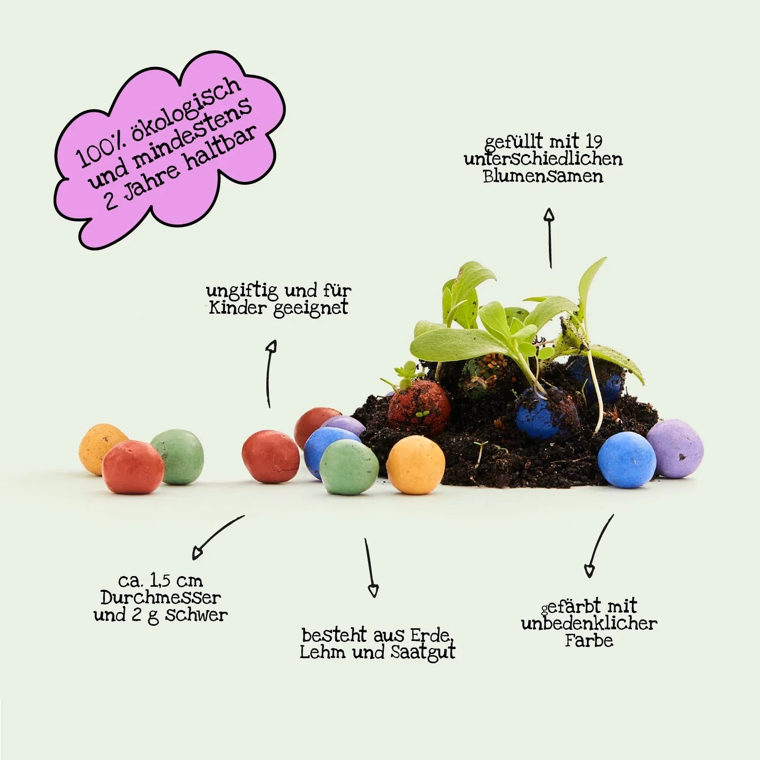 Die Mischung aus Erde, Tonanteil und Blumensaat ergibt stabile, gut trocknende Kugeln, die beim nächsten Regen aufblühen. Die robuste Form erleichtert Transport, Lagerung und kreatives Verpacken für verschiedenste Anlässe.