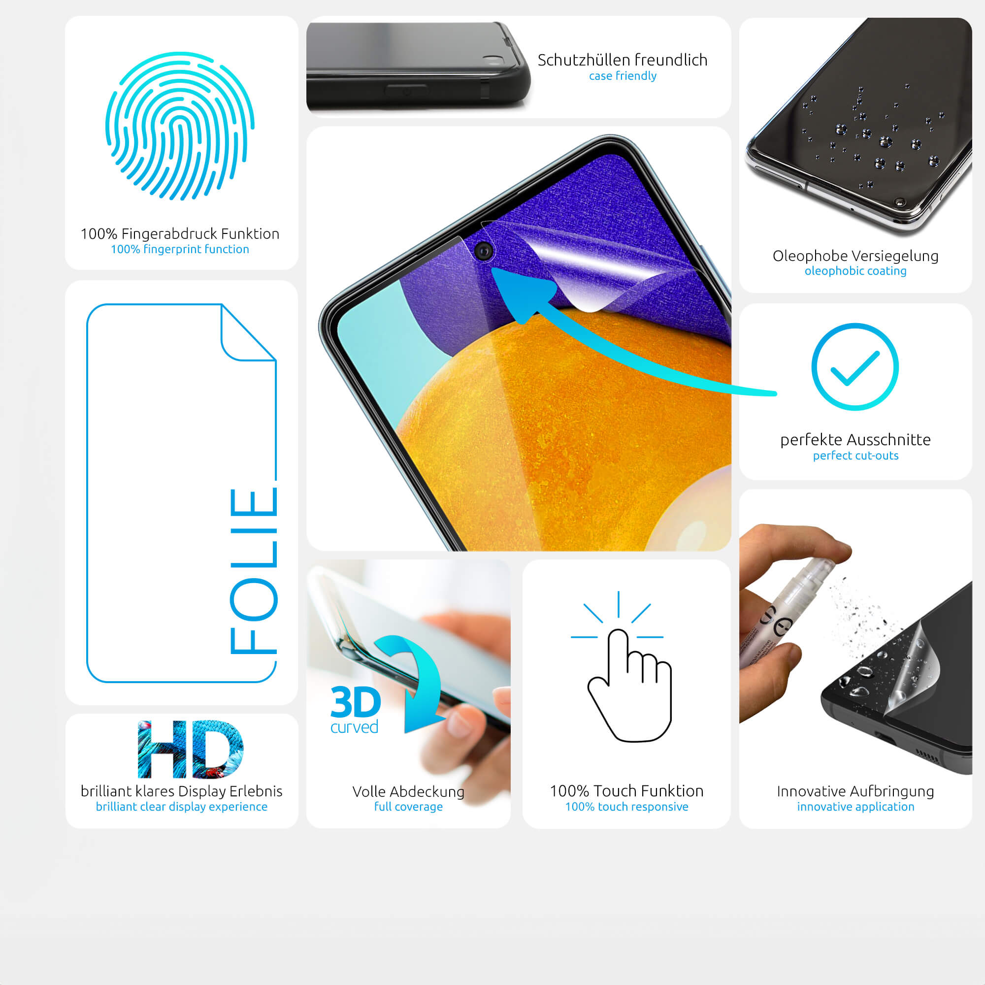 Die 3D Klarsichtfolie passt sich passgenau der Form des Displays an und schützt vollflächig – auch an den Rändern. Sie beeinträchtigt weder Kamera, Touchscreen noch HD-Darstellung und ist vollständig hüllenkompatibel, auch mit allen Closd Hüllen.