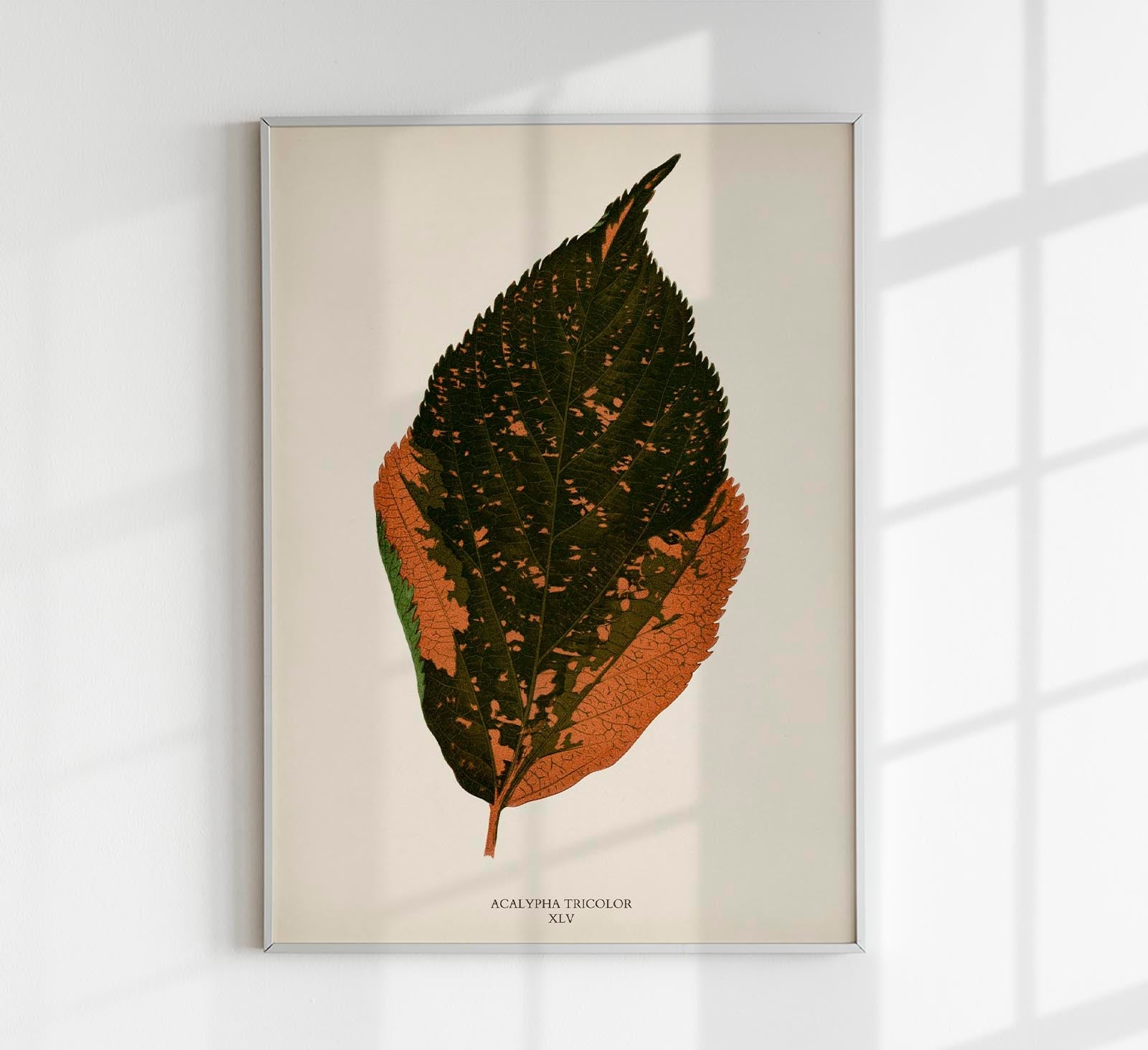 Das Acalypha Tricolor – Rare Leaves Poster zeigt die faszinierende Vielfalt der [translate:Rare Leaves]-Pflanze in intensiven Farben und detailreicher Darstellung. Das dynamische Motiv betont die einzigartige Schönheit tropischer Tier- und Pflanzenwelt.