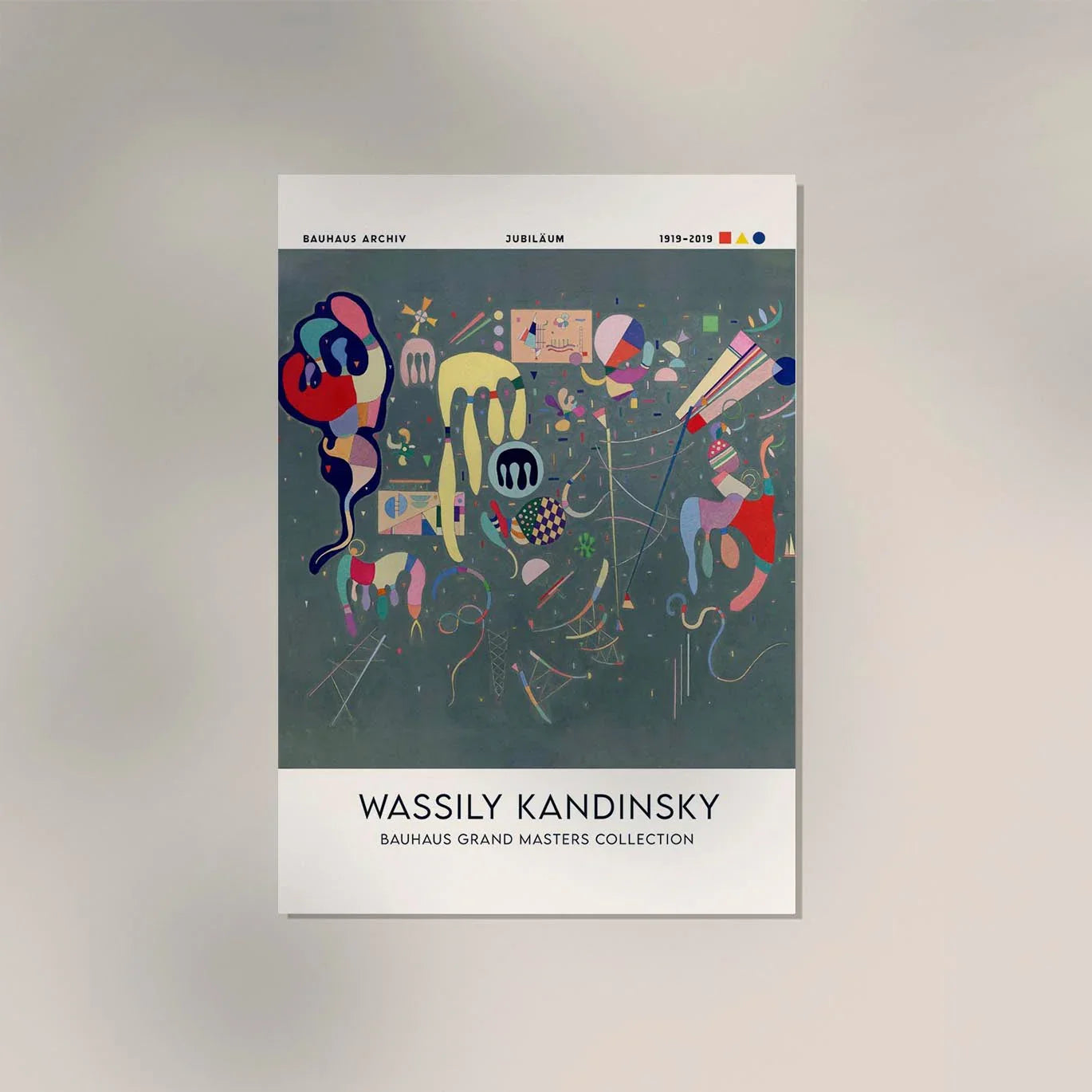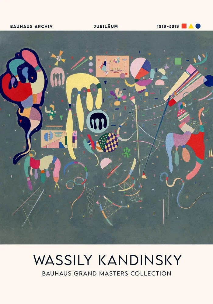 Ursprünglich Teil einer Ausstellung, zeigt es Kandinskys unverwechselbare Komposition aus Farbe, Dynamik und Geometrie – modern interpretiert für dein Zuhause.