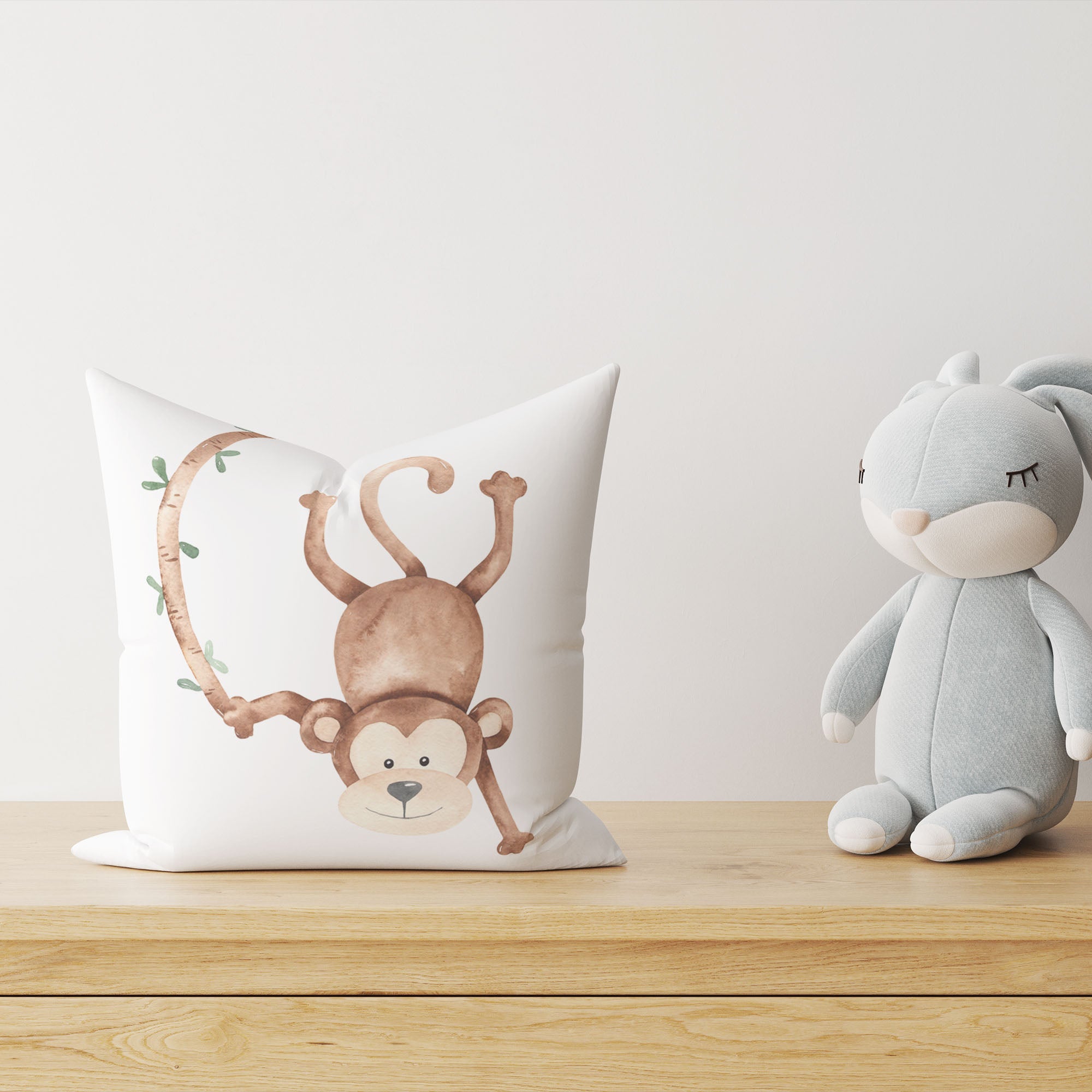 Das Affe Premium Kinder Dekokissen von Leslis bringt neugierige Dschungel‑Vibes ins Kinderzimmer – verspielt, warmherzig und perfekt für kleine Entdecker.