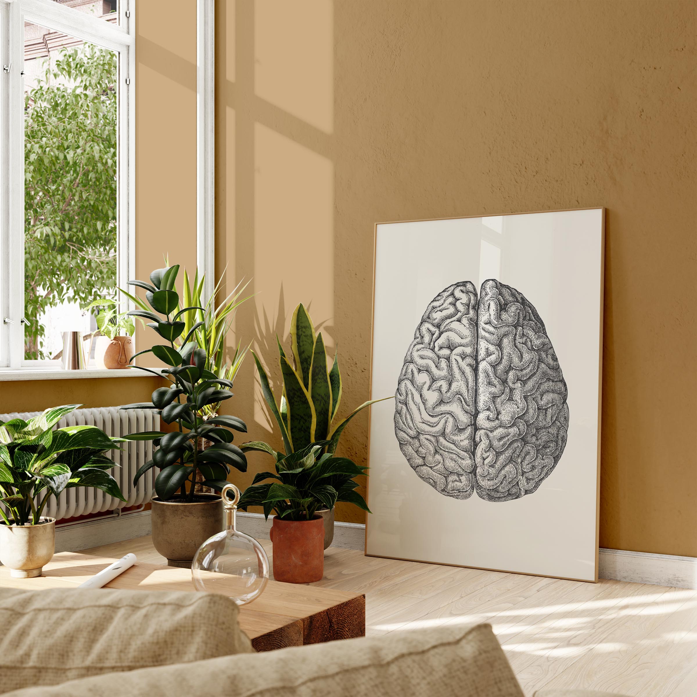 Ein Fine Art Print, der wissenschaftliche Präzision und moderne Drucktechnologie vereint, um das menschliche Gehirn in brillanten Farben und klaren Details zu präsentieren – individuell gefertigt in Berlin.