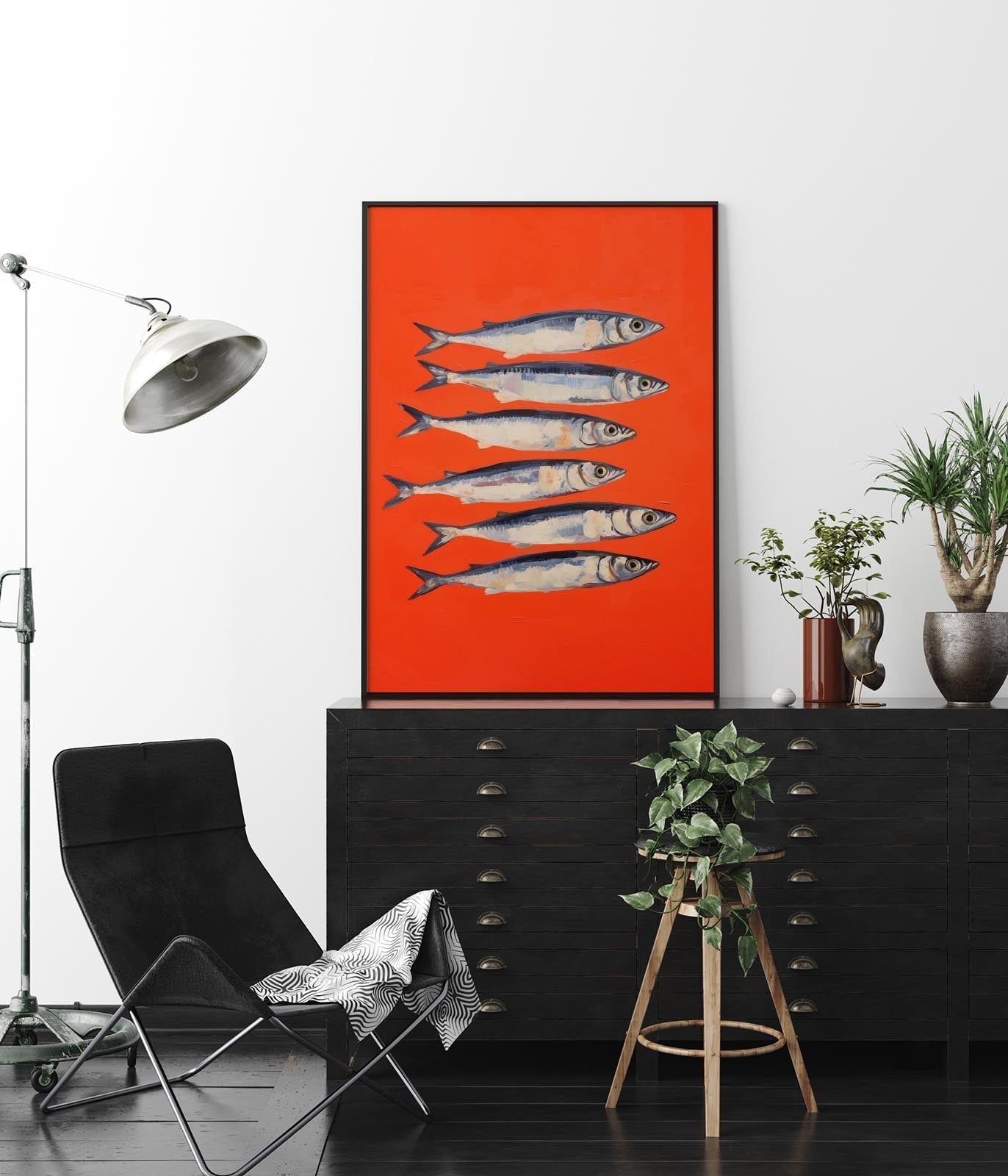 Anchovies in Red Art Print – ein moderner Farbakzent, der Kunst und Qualität in zeitlosem Design vereint.