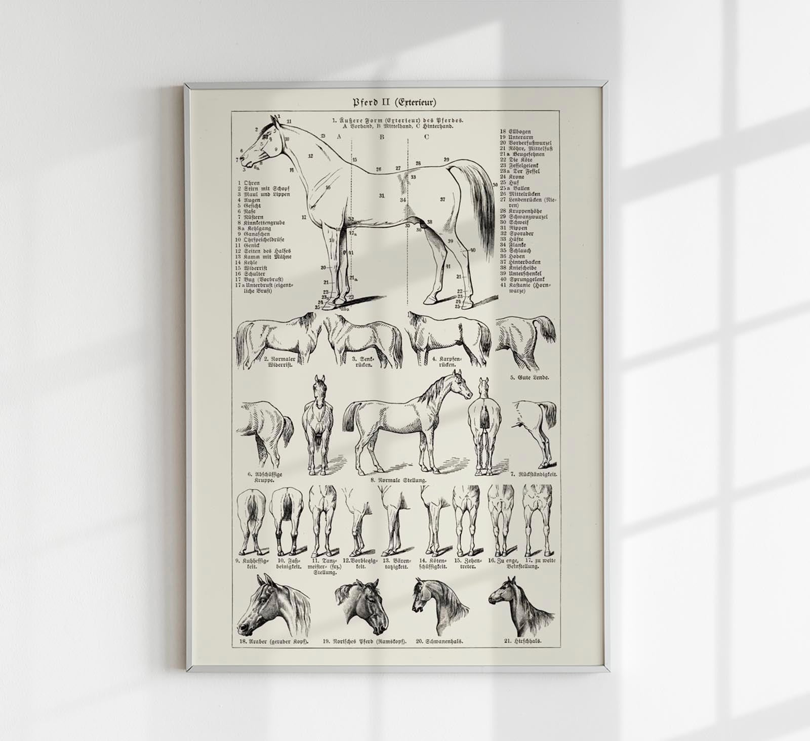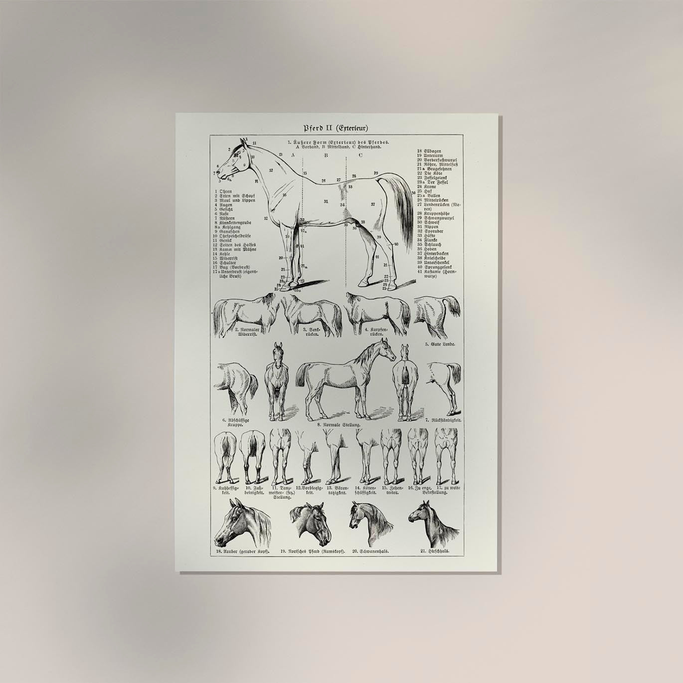 Das Antique Horses II Poster zeigt eine eindrucksvolle Darstellung von Pferden in einem zeitlos-vintageinspirierten Design. Jeder Druck wird sorgfältig in unserem Berliner Atelier auf Bestellung angefertigt und ist somit ein einzigartiges Kunstwerk.