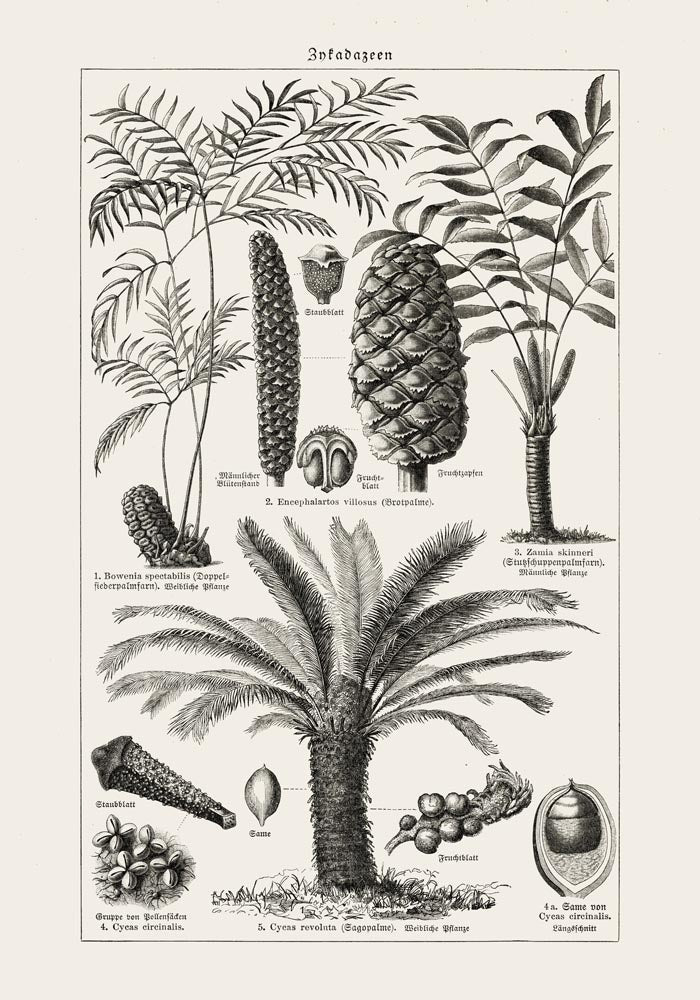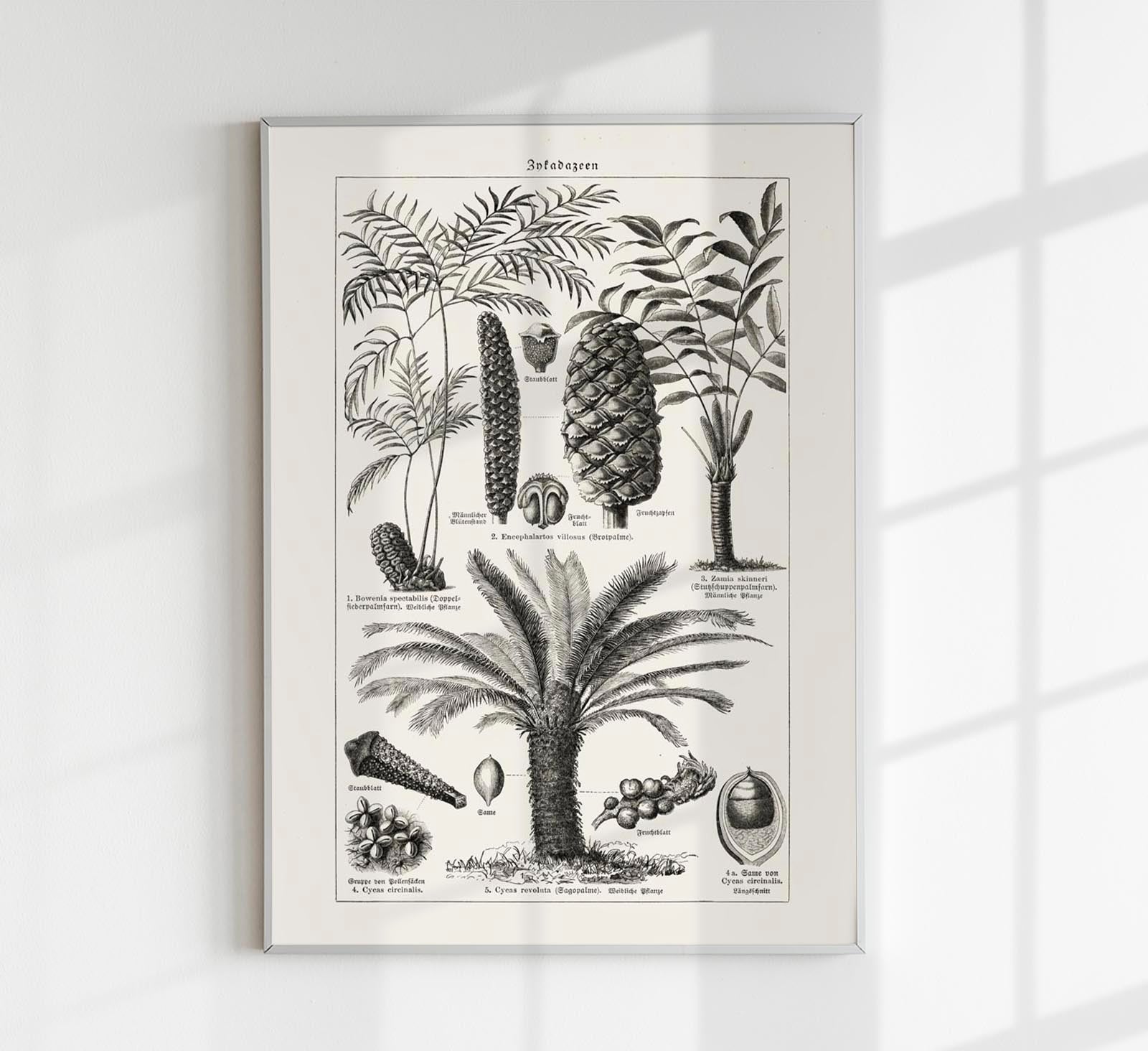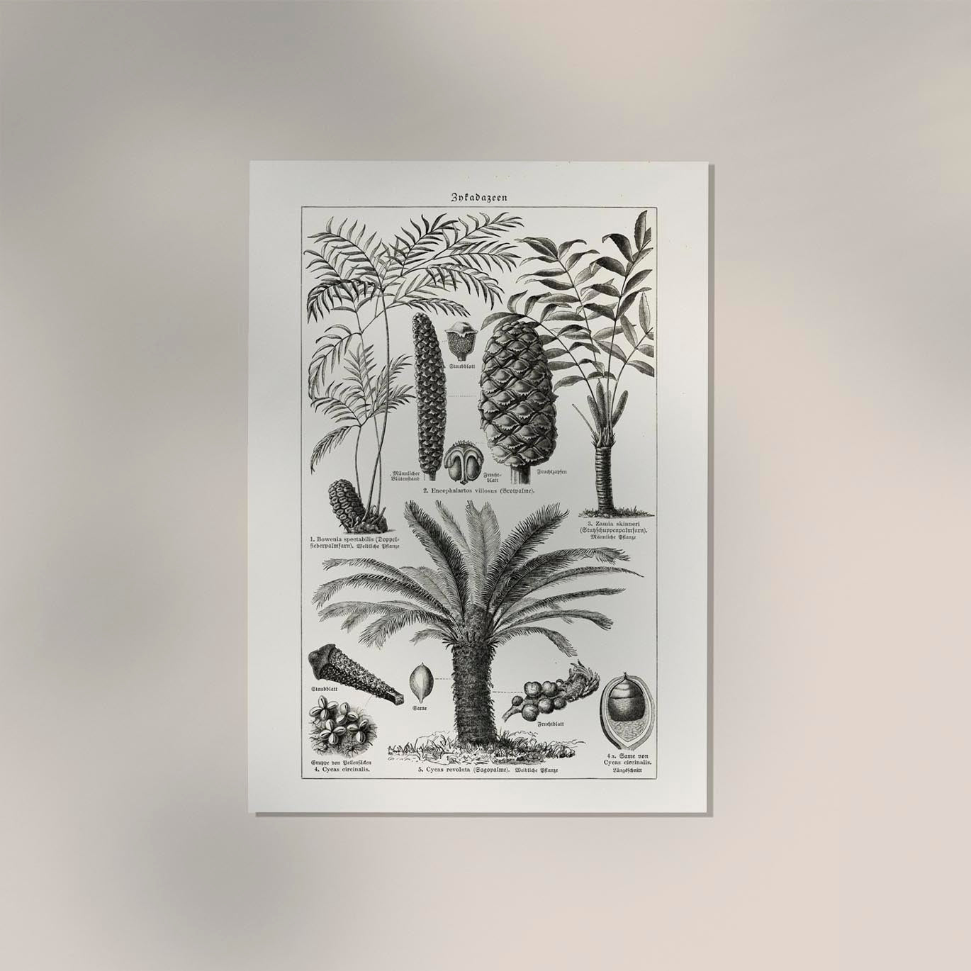 Das Antique Palm Tree III Poster zeigt eine detailreiche Vintage-Darstellung einer tropischen Palme. Jeder Druck wird auf Bestellung in unserem Berliner Atelier gefertigt und überzeugt durch präzise Linienführung und authentische Farbgebung.