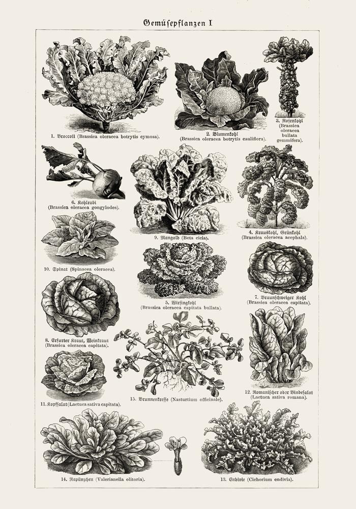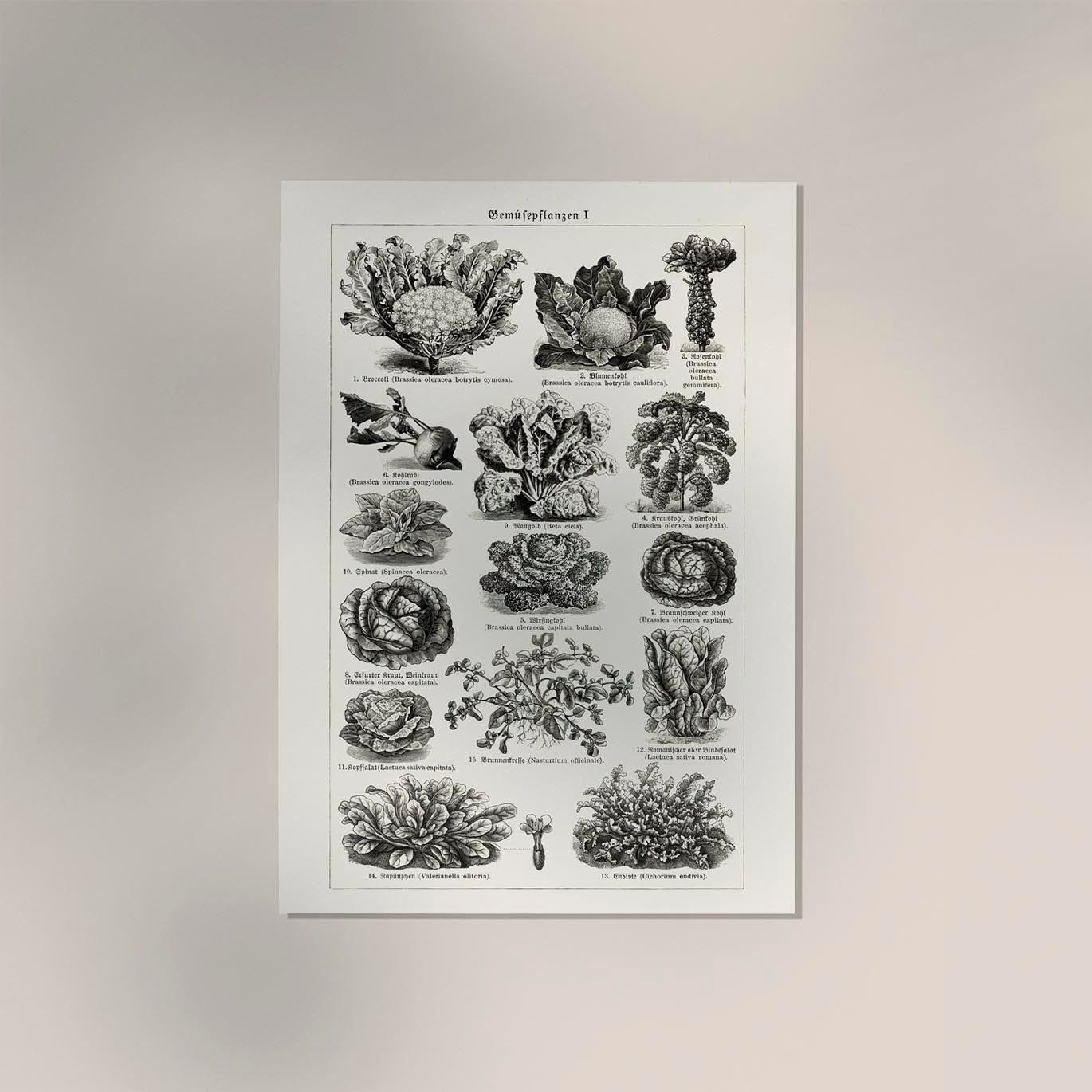 Antique Vegetable Chart Poster – Fine Art Print | Vintage Botanical | UV‑resistent