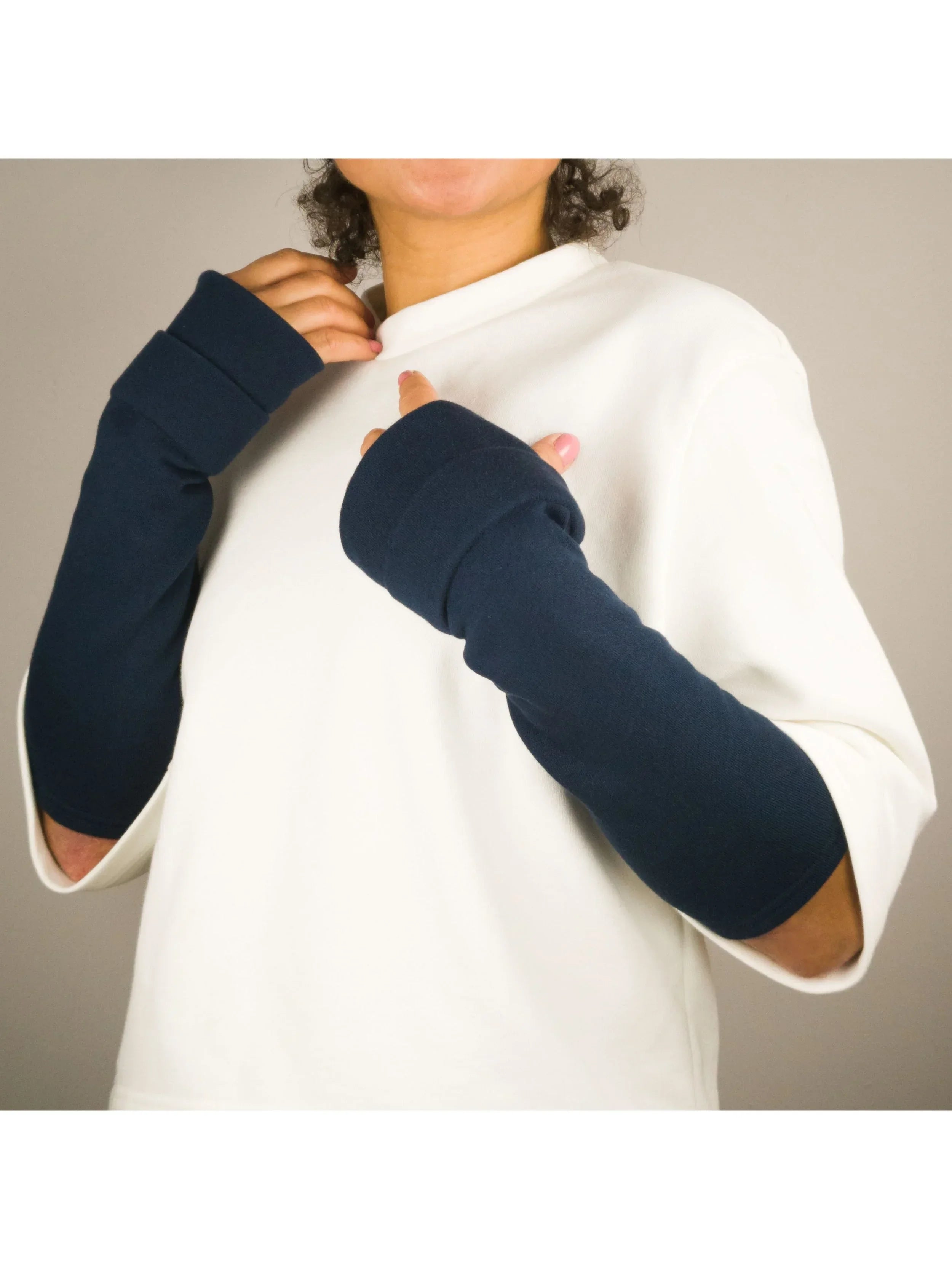 Die Armstulpen BLUE BIG FOLD sind ein minimalistisches Accessoire für kühle Tage – funktional, weich und stilvoll.
