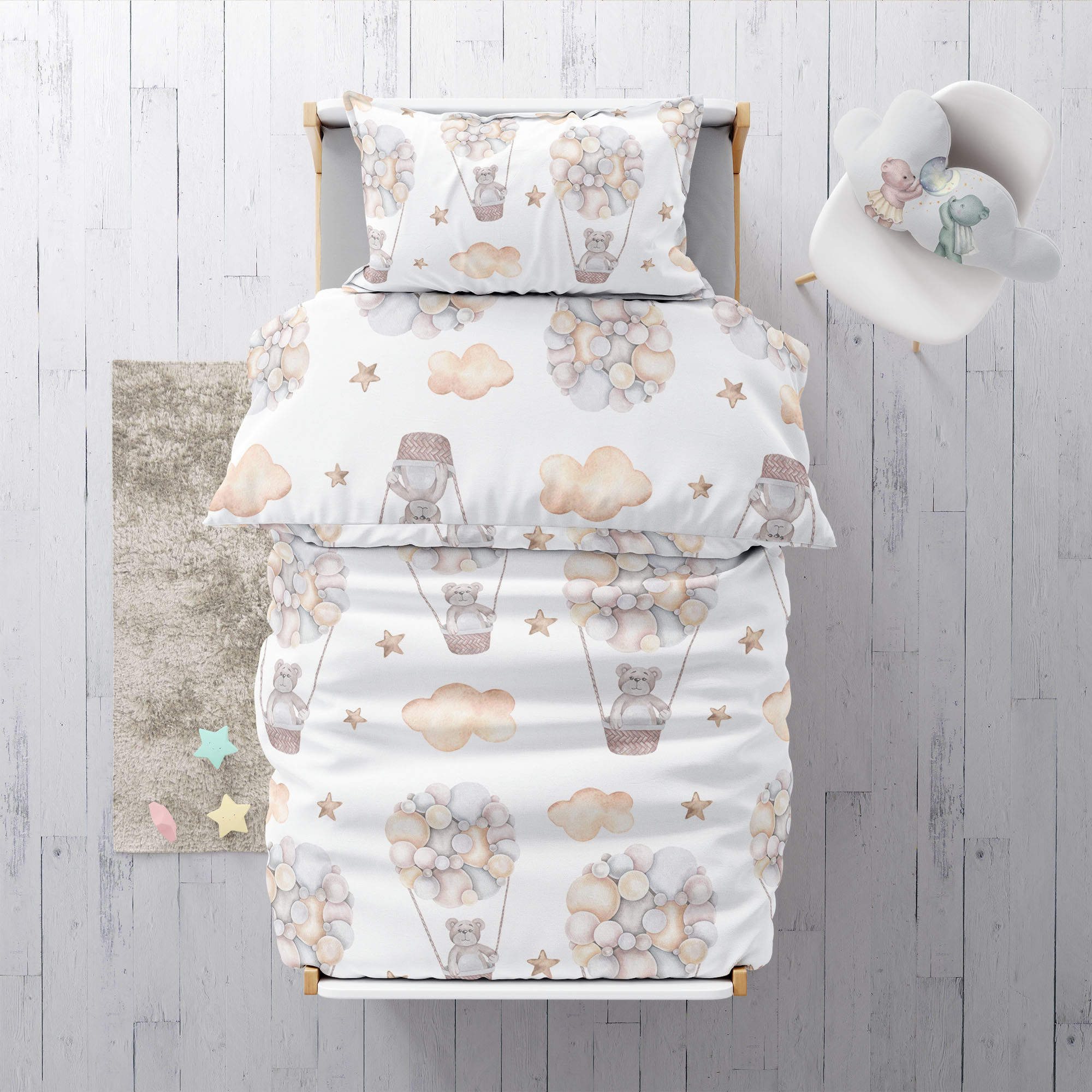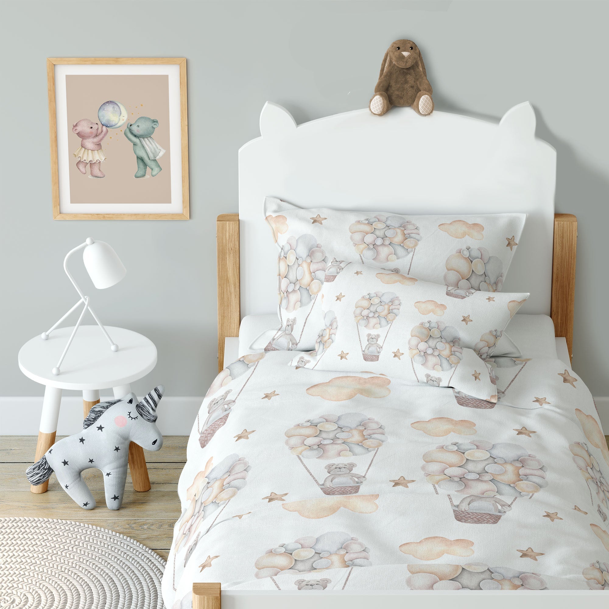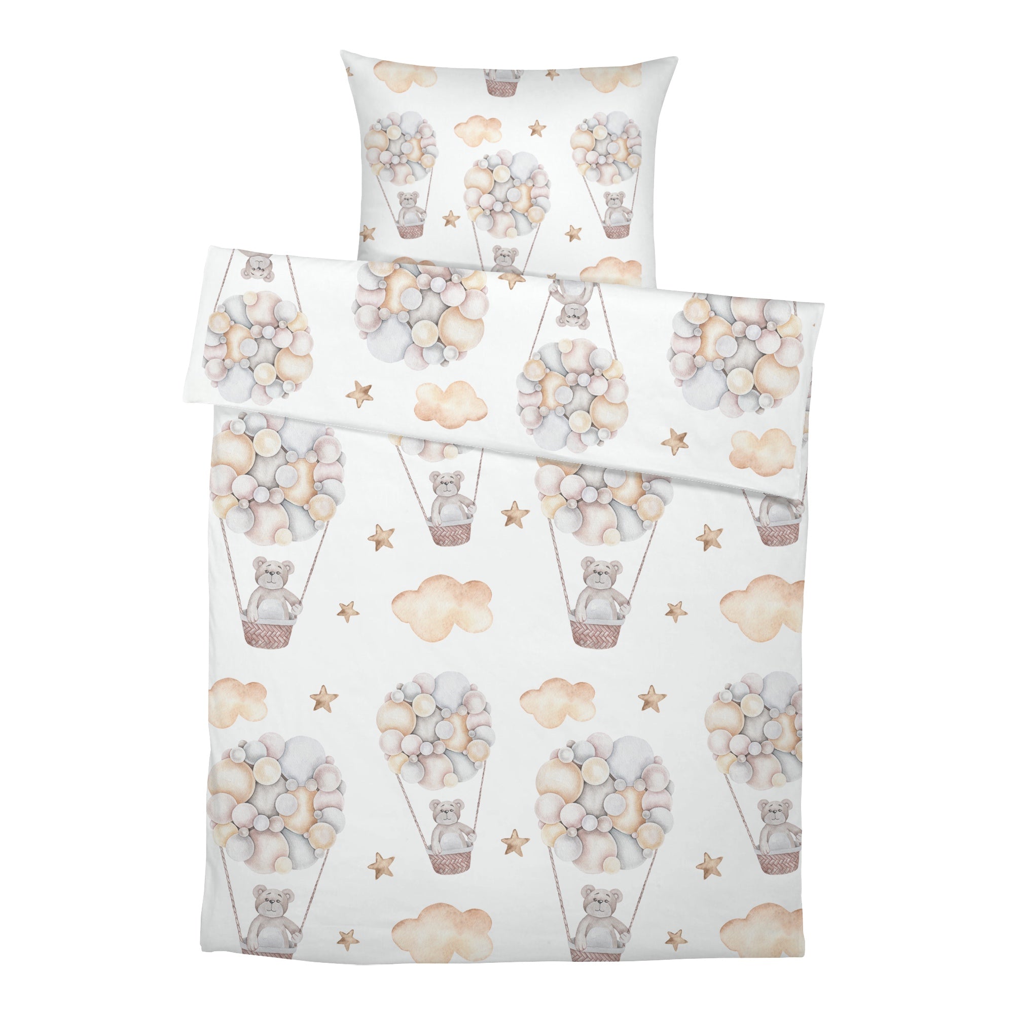 „Bärlis Ballonfahrt“ verbindet liebevolles Design mit verantwortungsvoller Materialwahl – für ein beruhigendes Schlafklima und himmlische Träume.