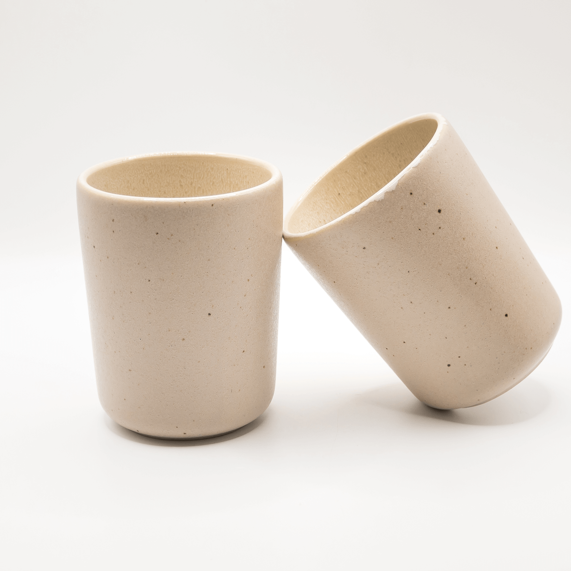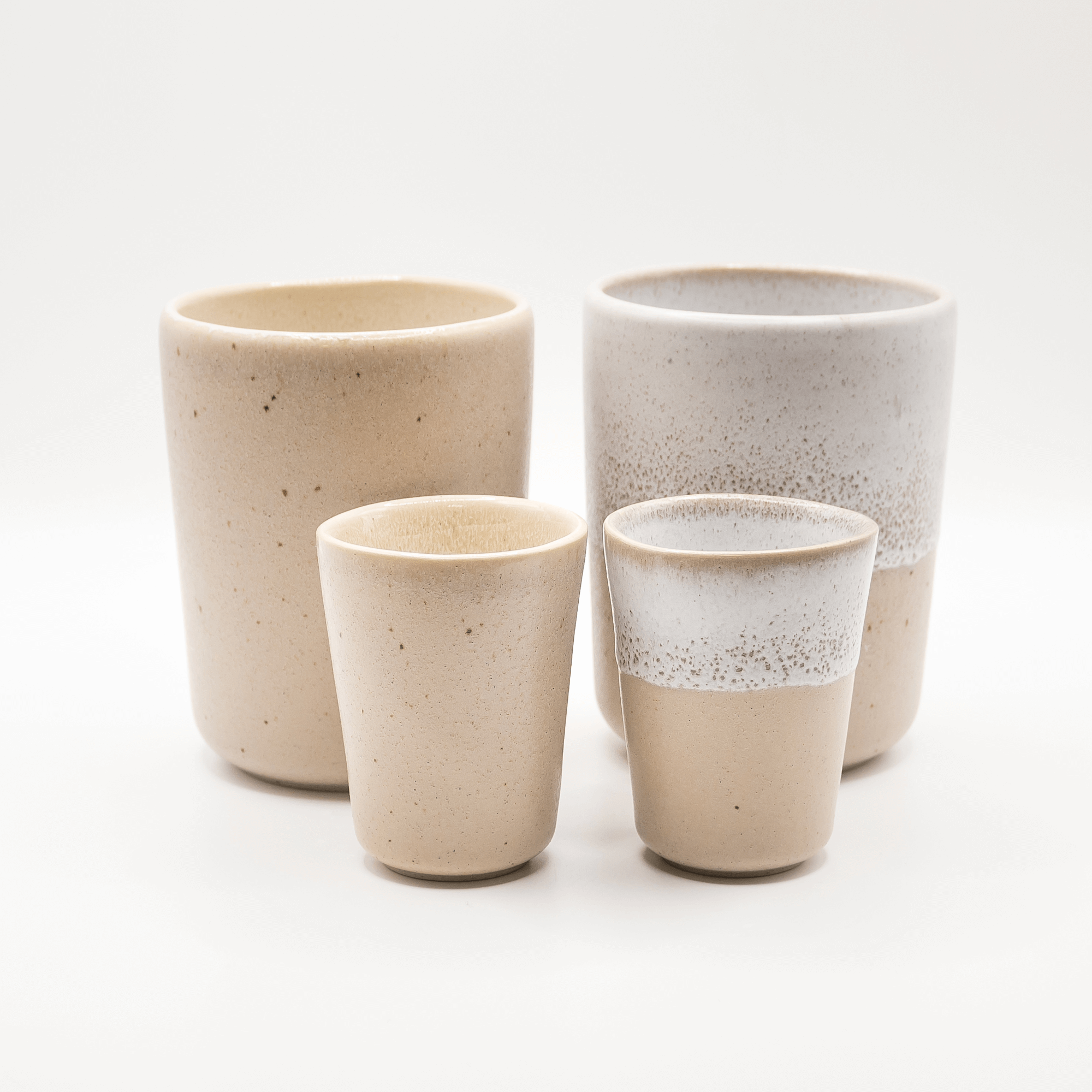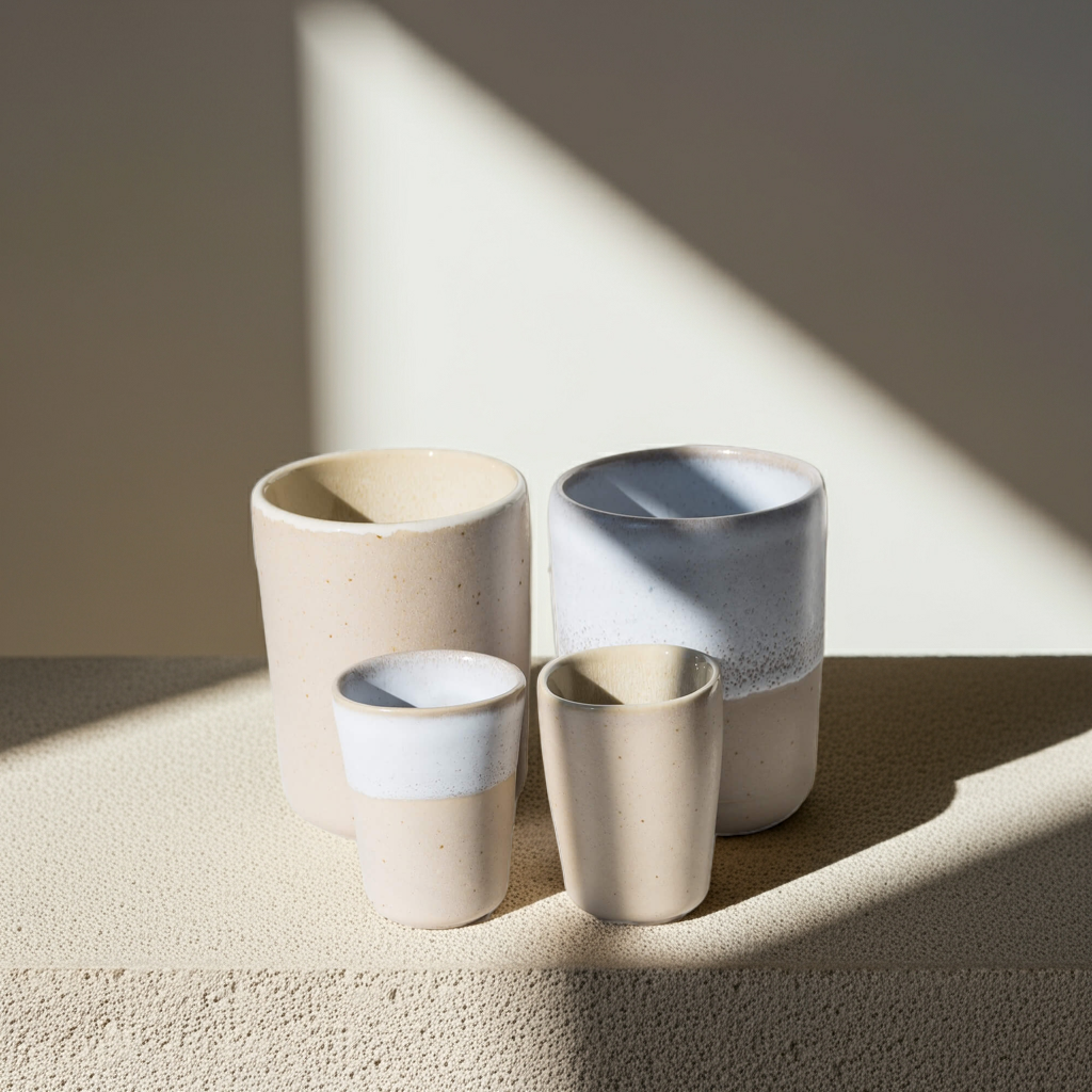 Becherset Mixed – Steingut | Handgemacht | Beige & Weiß