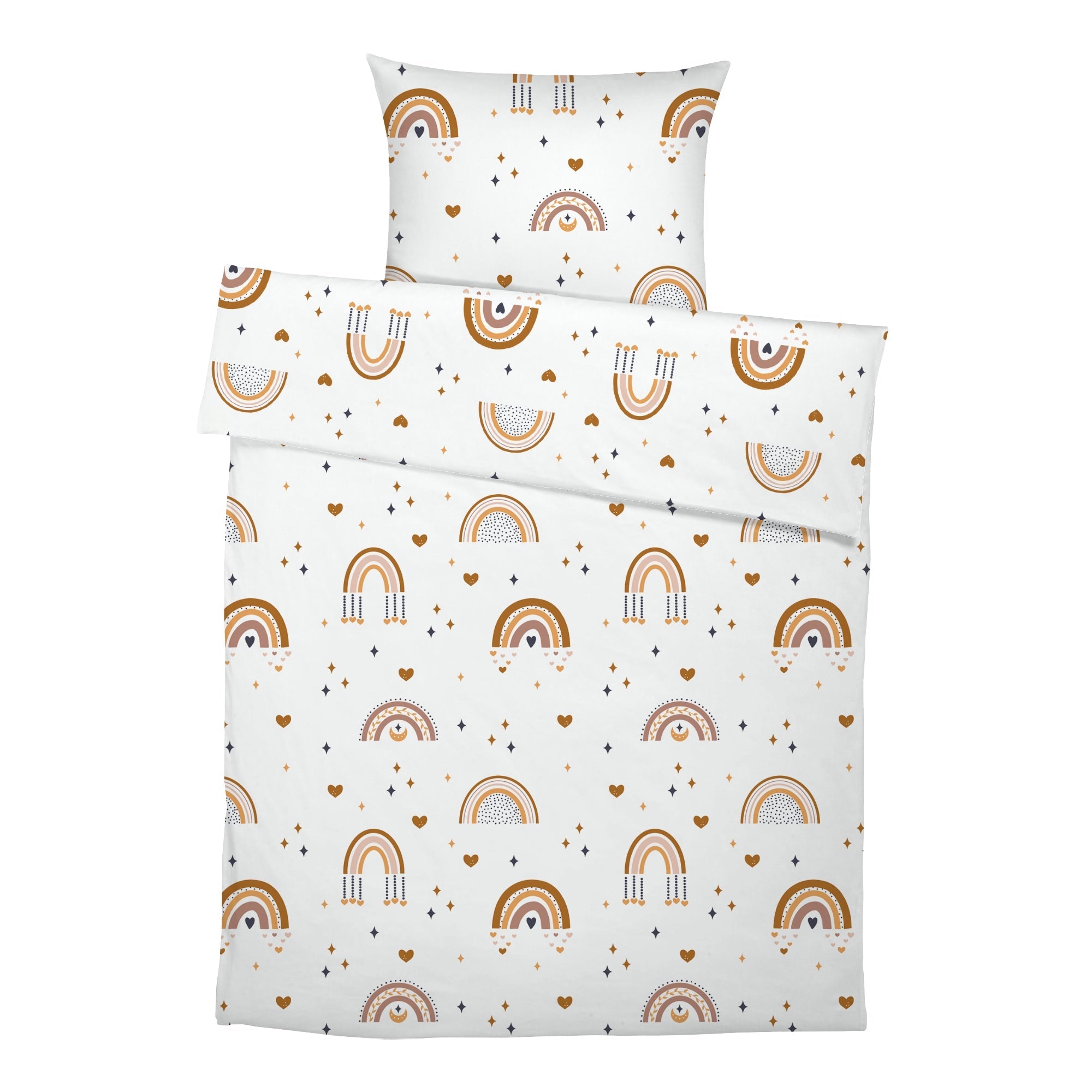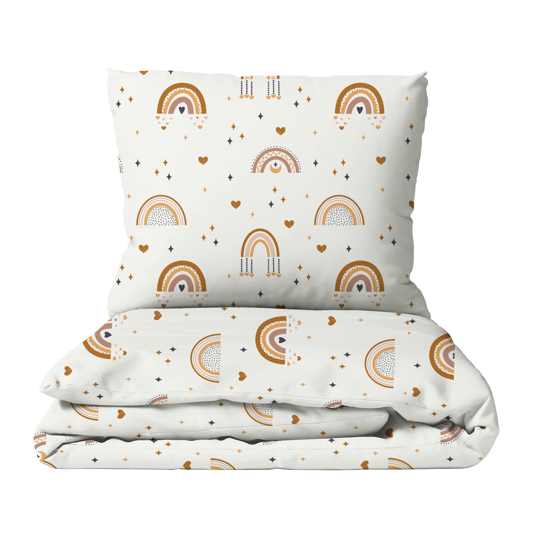 Die Boho Rainbow Premium Kinderbettwäsche bringt in warmen Boho‑Tönen gezeichnete Regenbögen ins Kinderzimmer und schafft aus OEKO‑Tex 100 zertifizierter Baumwolle eine atmungsaktive, weiche und sichere Schlafumgebung.