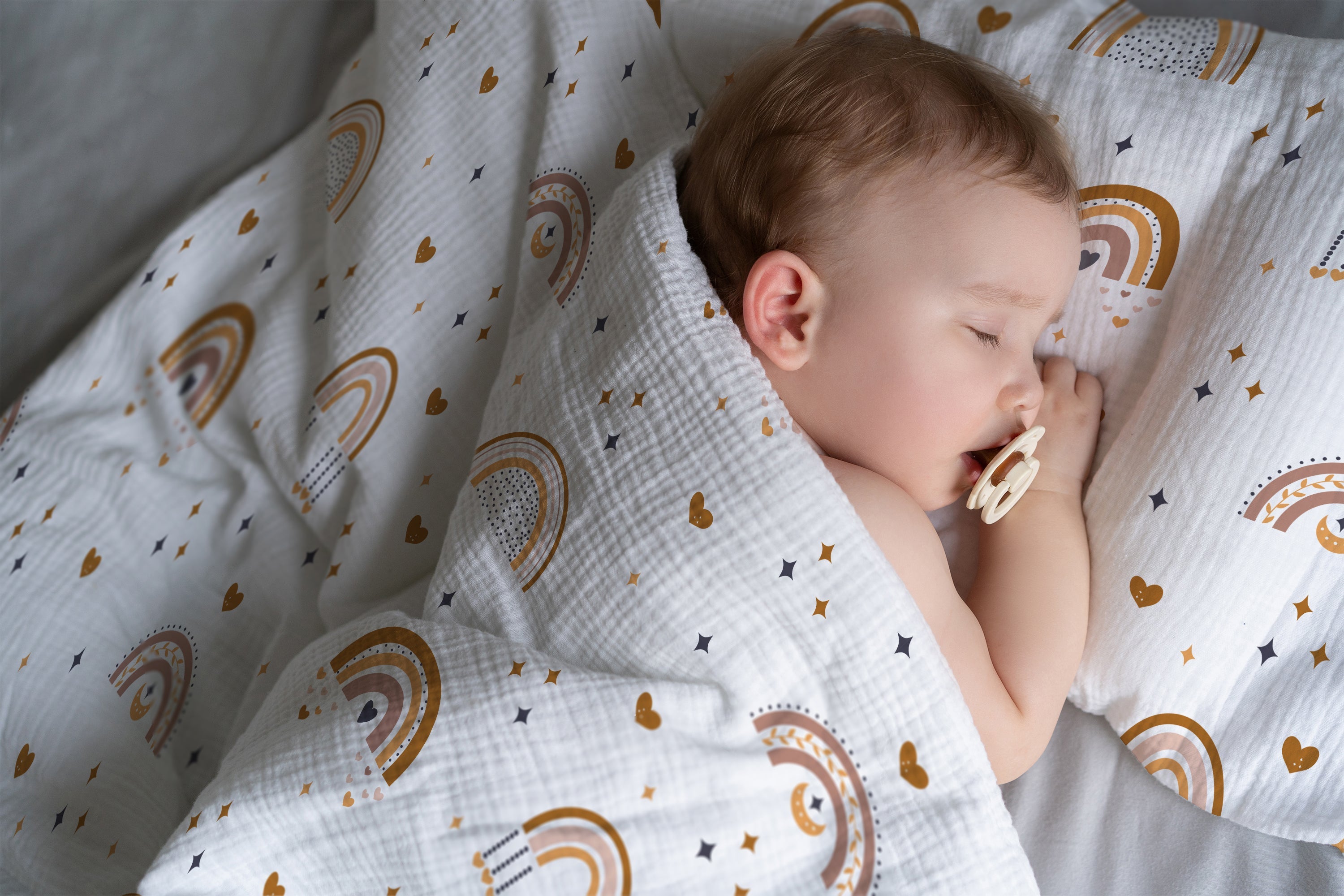 Wahlweise 100 % Baumwolle in Satin‑Webart (glatt, weich, feiner Glanz, leicht kühlend) oder 100 % Musselin (zweilagig, sehr weich, luftig) für ein ausgeglichenes Schlafklima. Oberflächengefühl: sanft, hautfreundlich – angenehm auch für sensible Kinderhaut.