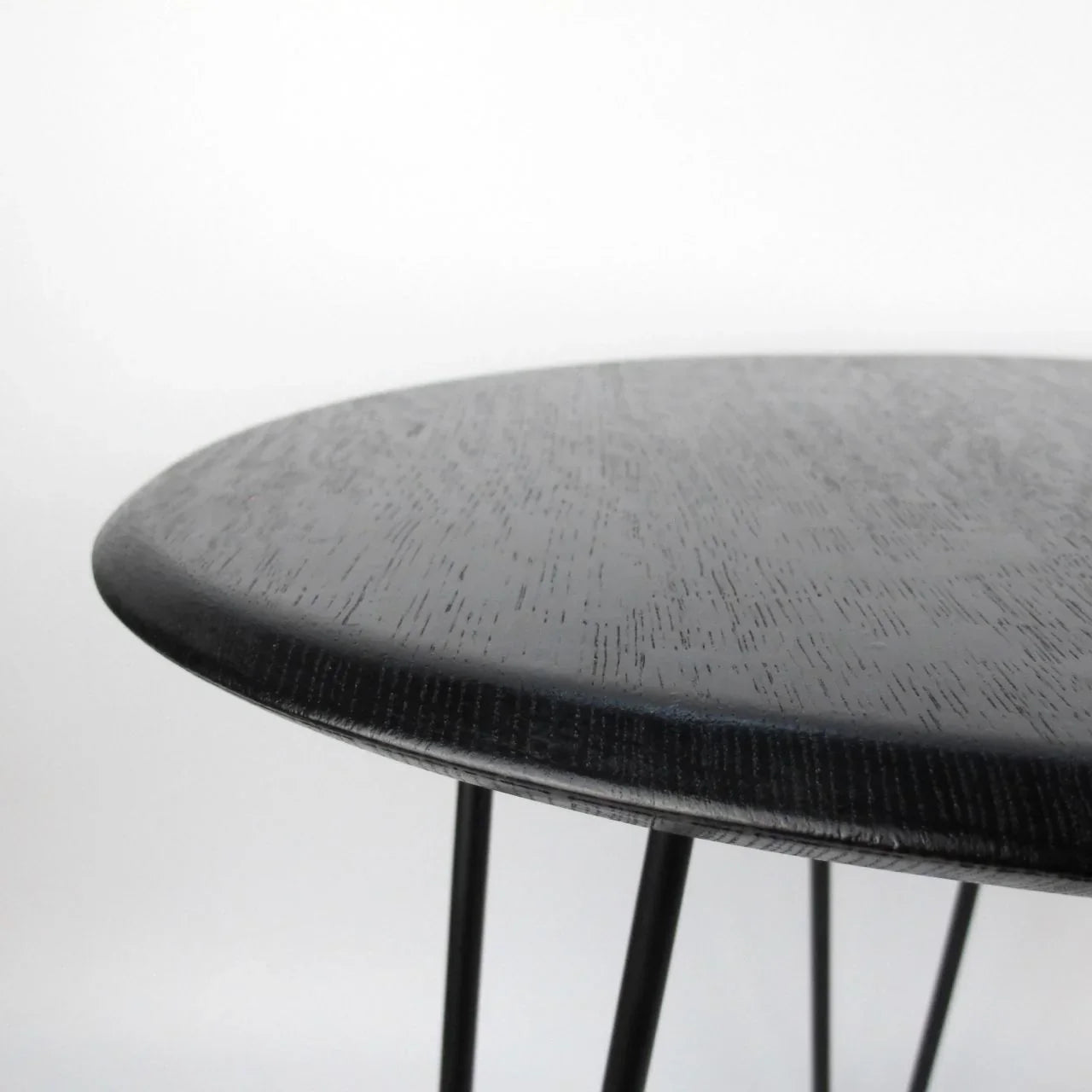 Schwarz gebeizte und seidenmatt lackierte Oberfläche: Schützt das Holz dauerhaft vor Feuchtigkeit und macht den Tisch besonders pflegeleicht.