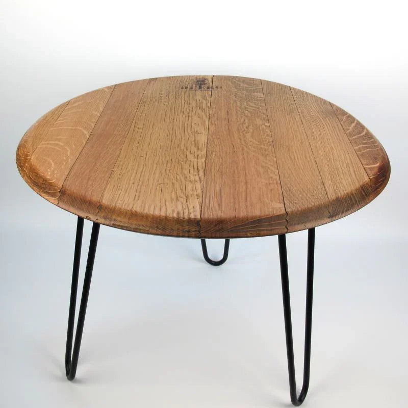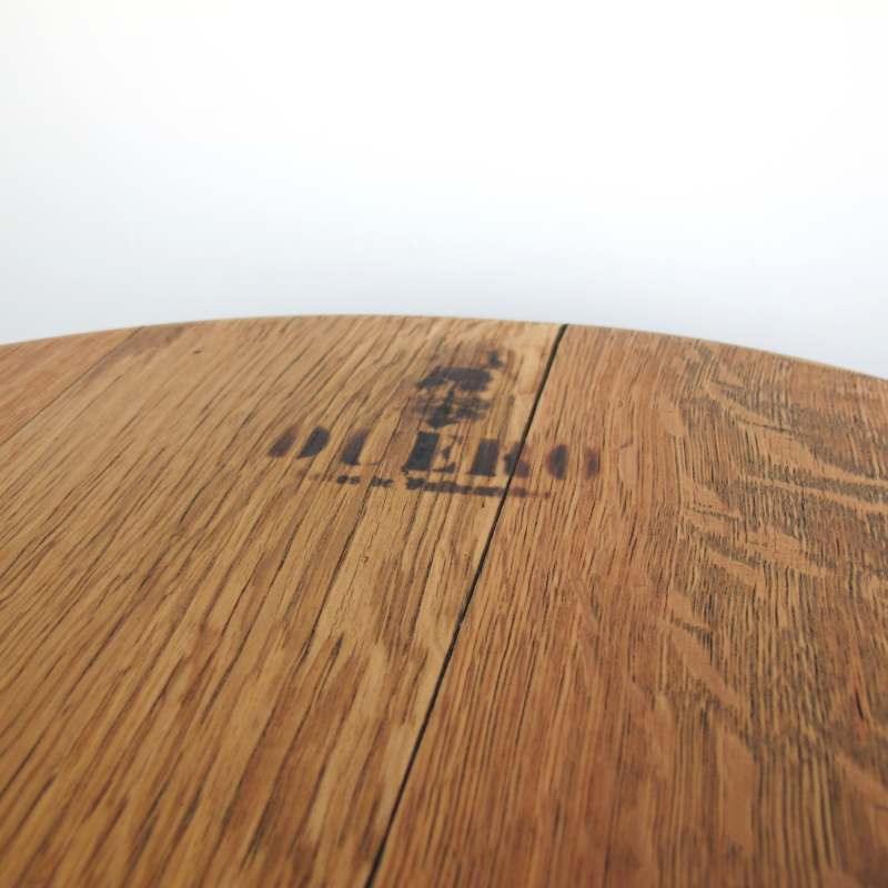 Recycelter Weinfassdeckel: Jeder Tisch wurde aus einem echten Fass gefertigt, in dem Rotwein gereift ist – das Ergebnis ist ein Möbelstück mit sichtbarer Geschichte und natürlicher Patina.