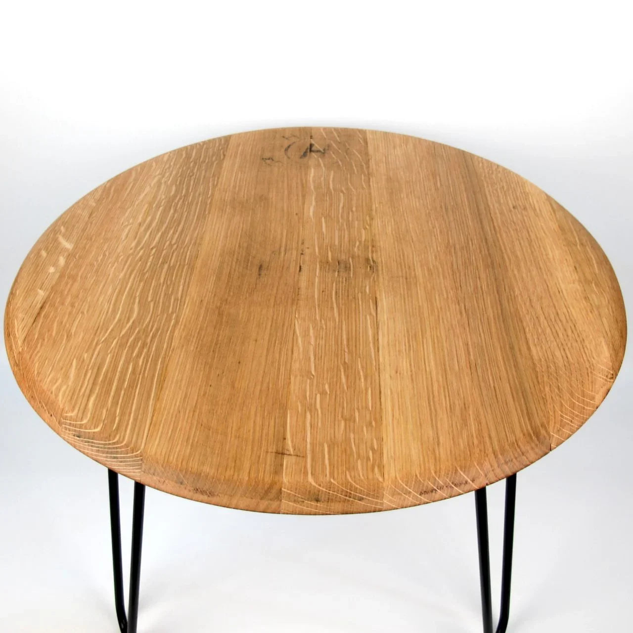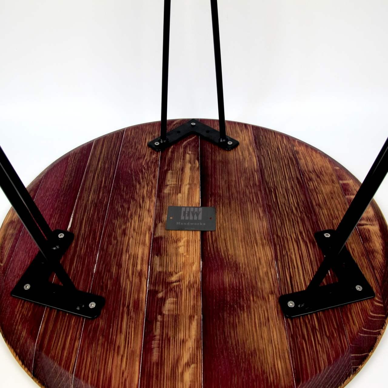 Jeder Couchtisch ist handgefertigt aus einem echten Weinfassdeckel mit originaler Prägung. Durch die geölte Oberfläche und die stabilen Stahlbeine entsteht ein langlebiges, pflegeleichtes Möbelstück, das sowohl optisch als auch funktional überzeugt.