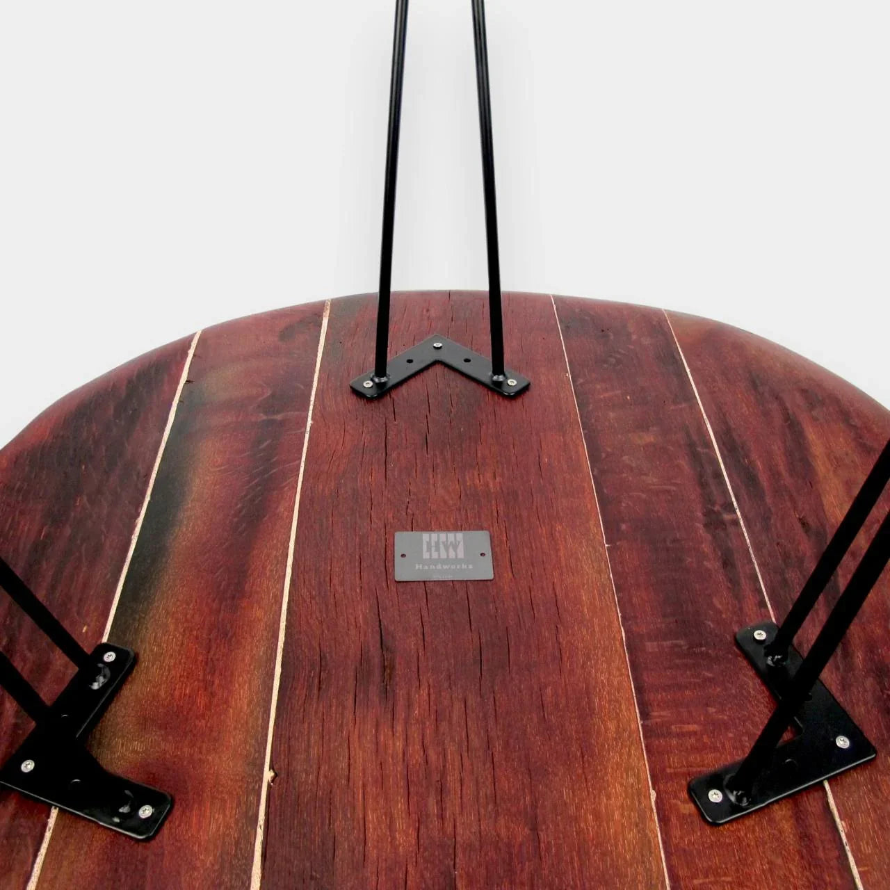 Gefertigt aus massivem Eichenholz alter Weinfässer, steht der Tisch für nachhaltige Ressourcennutzung und hochwertige Handwerkskunst. Jedes Stück ist ein Beitrag zu verantwortungsvollem Wohnen.