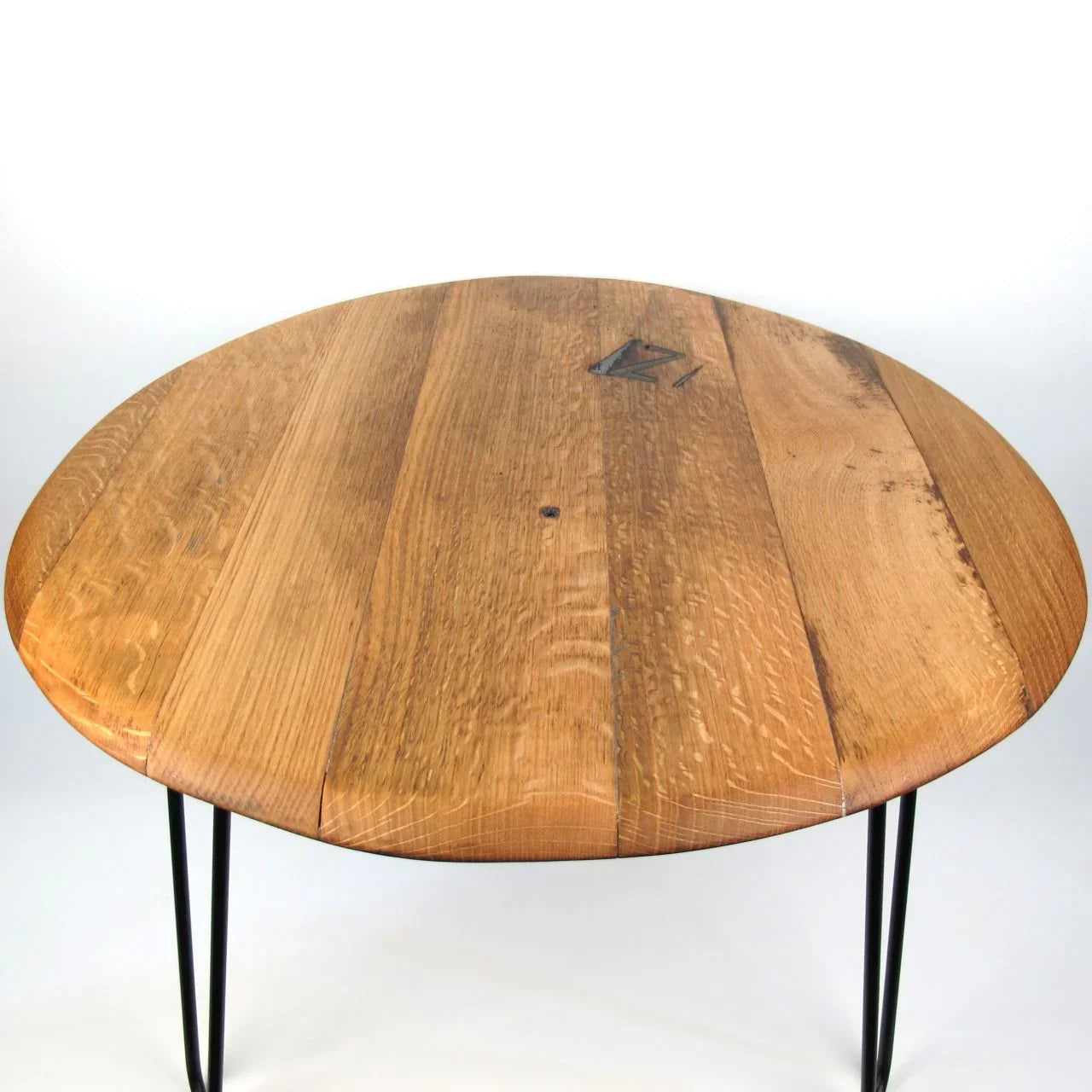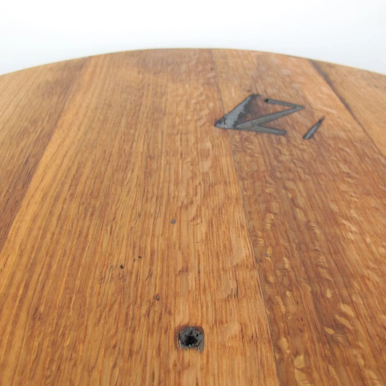 Ein Tisch mit Charakter: Die sichtbare „Z“-Markierung erzählt die Geschichte des Whiskyfasses und unterstreicht die Einzigartigkeit jedes einzelnen Stücks – perfekt für Liebhaber authentischer Materialien und handgefertigter Qualität.