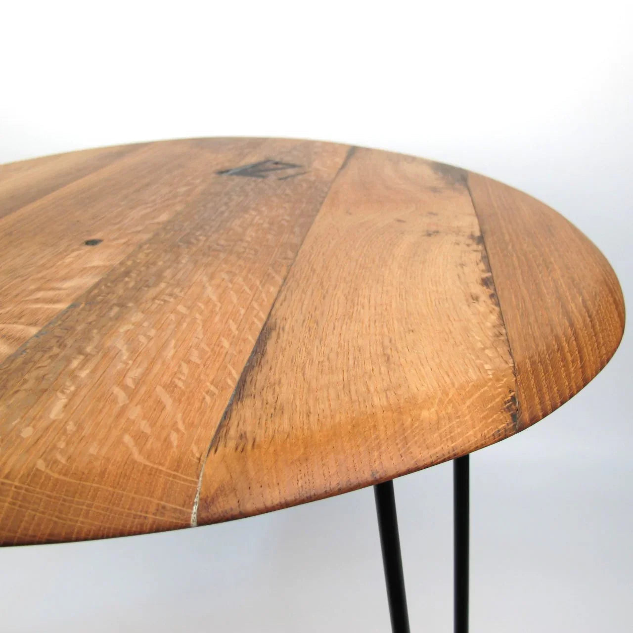 Gefertigt aus wiederverwertetem Eichenholz eines alten Whiskyfasses, bleibt der ursprüngliche Charakter des Materials erhalten. Die handwerkliche Verarbeitung unterstreicht den authentischen Charme jedes einzelnen Tisches.