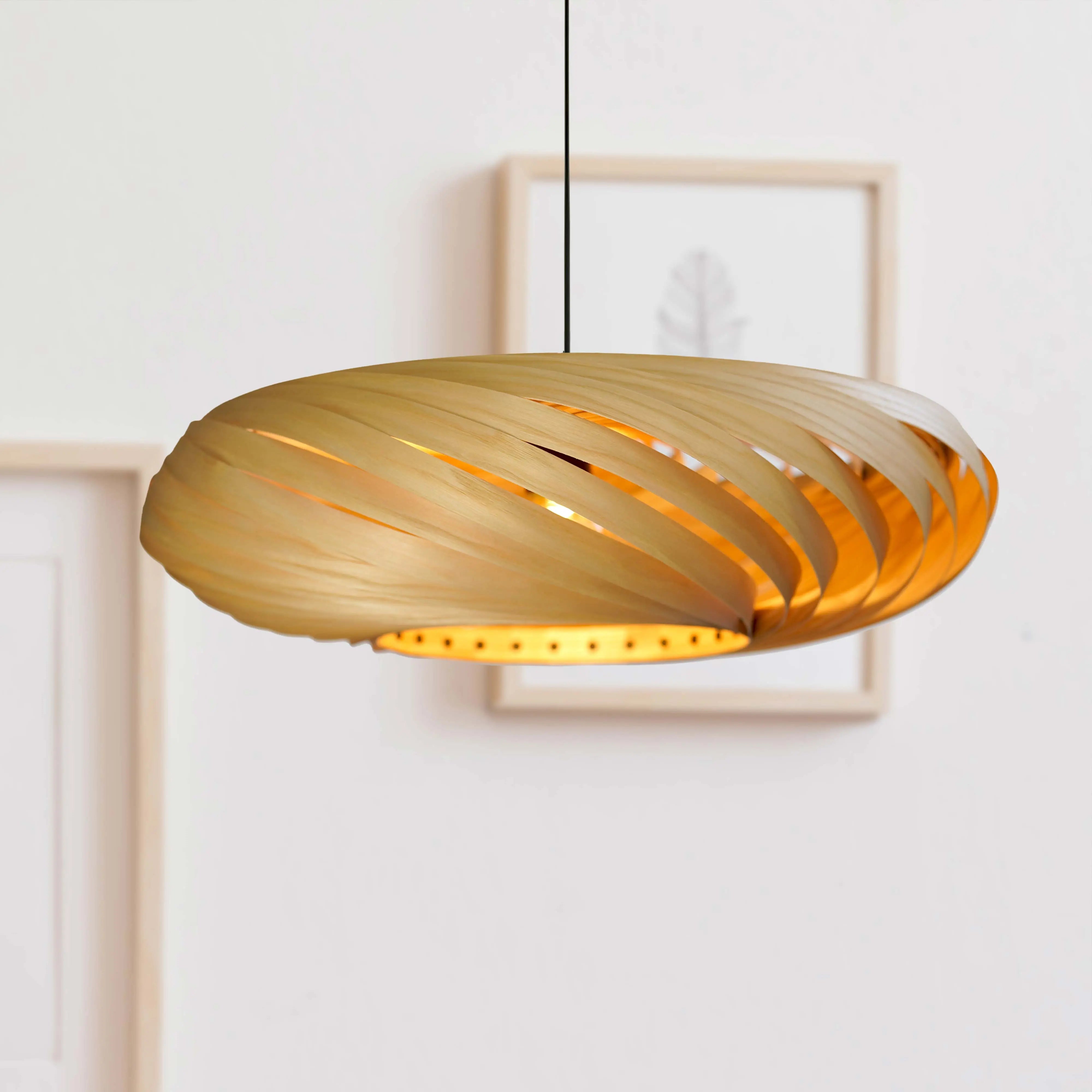 Die Hängeleuchte Larena aus echtem Oliveschenholz verbindet handwerkliche Qualität mit einem natürlichen, modernen Design. Mit ihrem markanten, frei schwebenden Look und der sorgfältigen Verarbeitung ist sie nicht nur eine Leuchte, sondern ein Statement im Raum. Der große Lichtauslass sorgt für eine angenehme, gleichmäßige Ausleuchtung – ideal für Wohn-, Ess- oder Arbeitsbereiche.