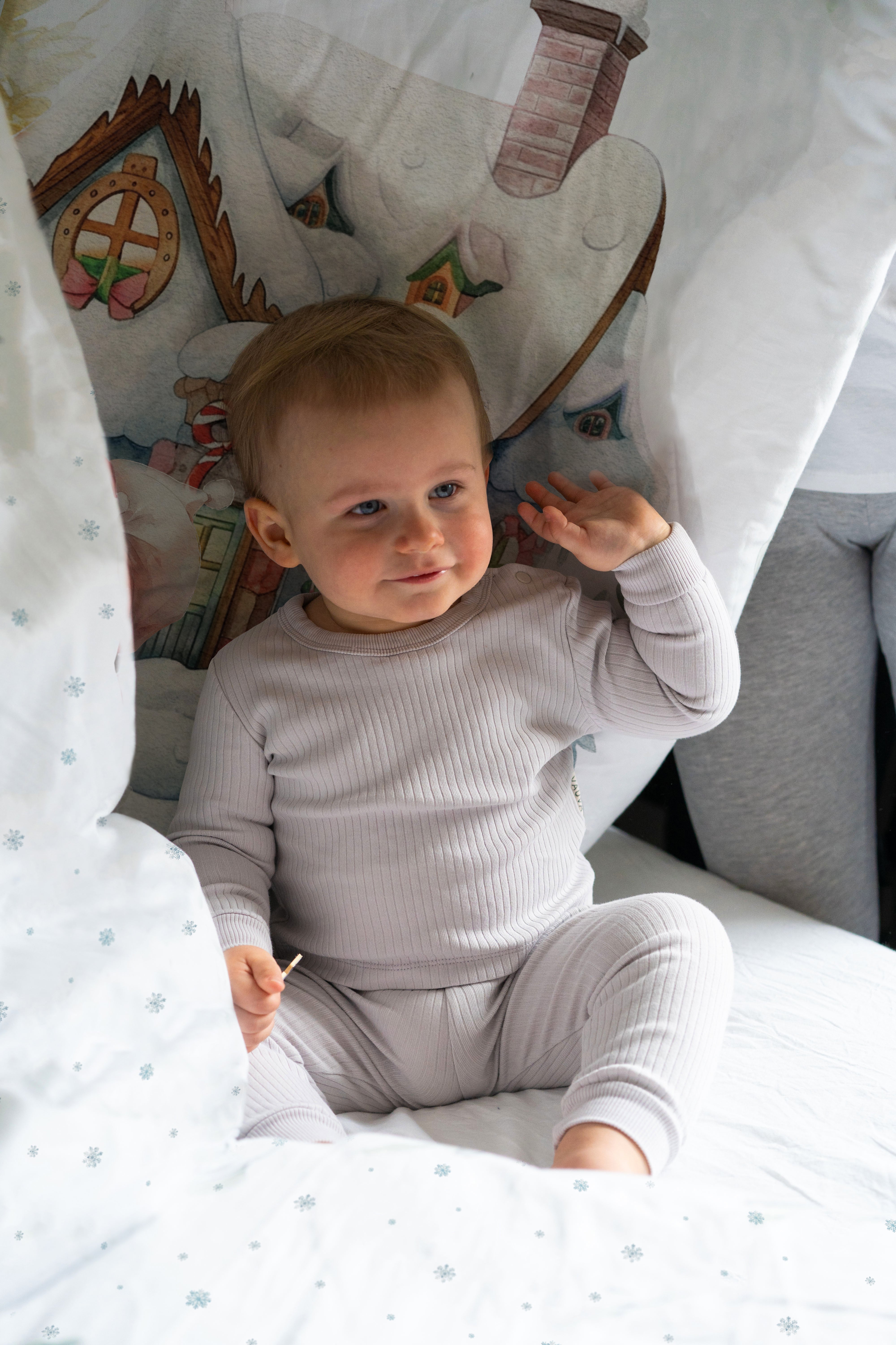 Haus des Santa Claus Premium vereint naturweiche Baumwolle, festliche Illustrationen und schadstoffarme Verarbeitung – für geborgene Nächte in märchenhafter Winterstimmung.