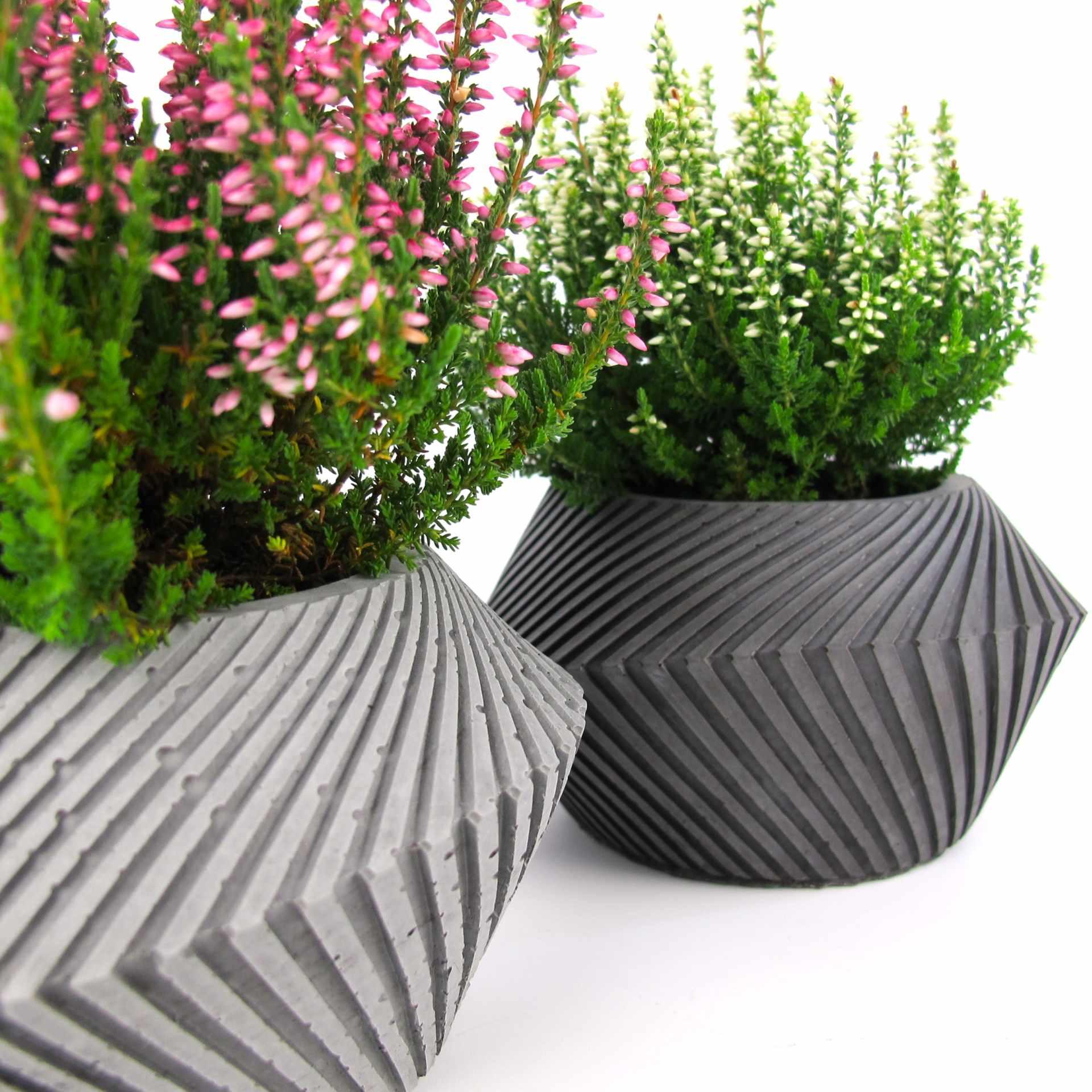 Keeris Pflanzgefäß aus Beton – modernes Design mit dynamischer Form, gefertigt aus wasserundurchlässigem Hochleistungsbeton. Ein langlebiges, pflegeleichtes Statement-Stück für Haus und Garten.
