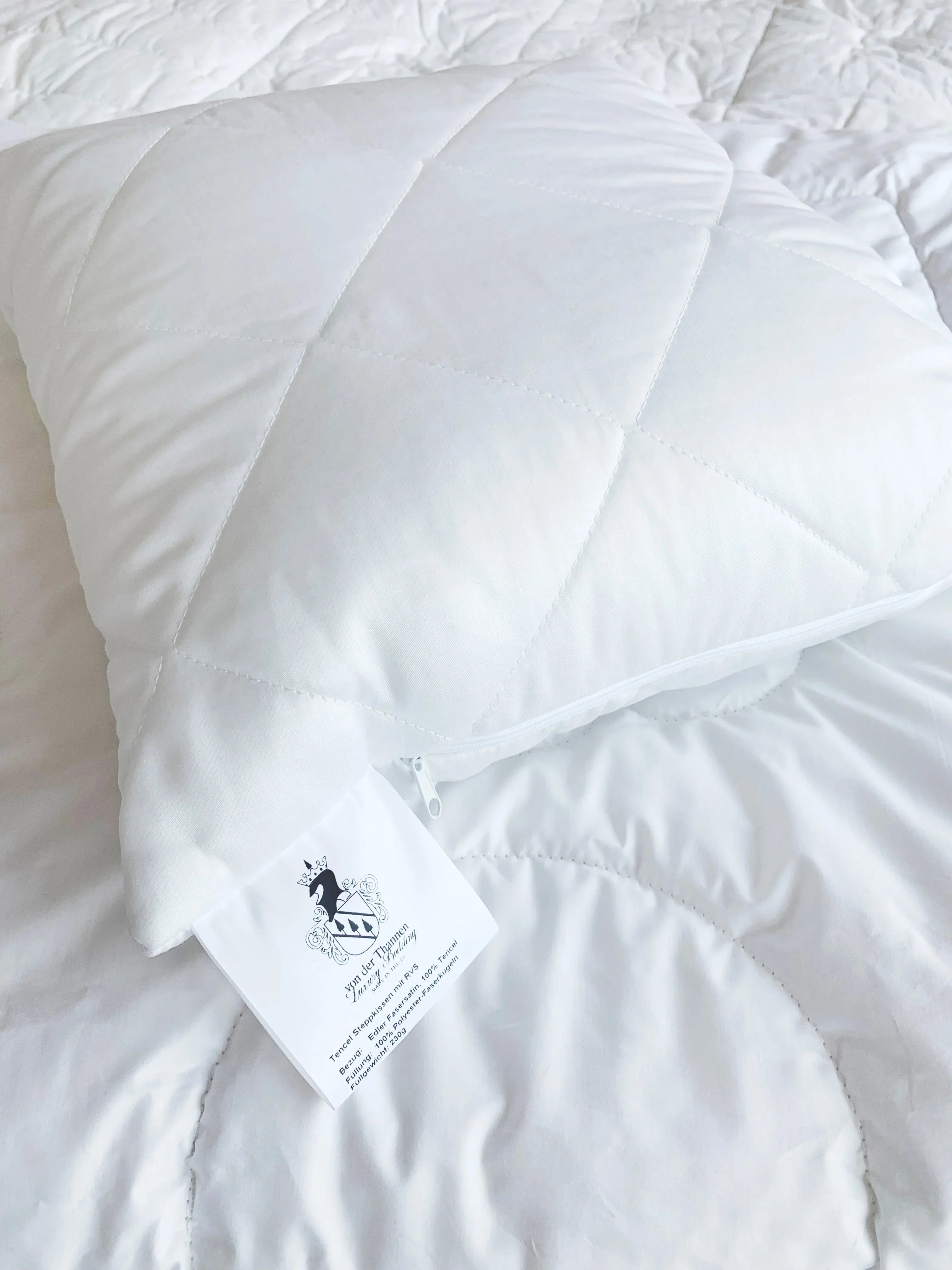 Die Kombination aus hochwertigem Füllmaterial und 100% Baumwollbezug sorgt für optimale Unterstützung der Kopf- und Nackenpartie. Oberflächen-/Bediengefühl: weich, stützend & atmungsaktiv.